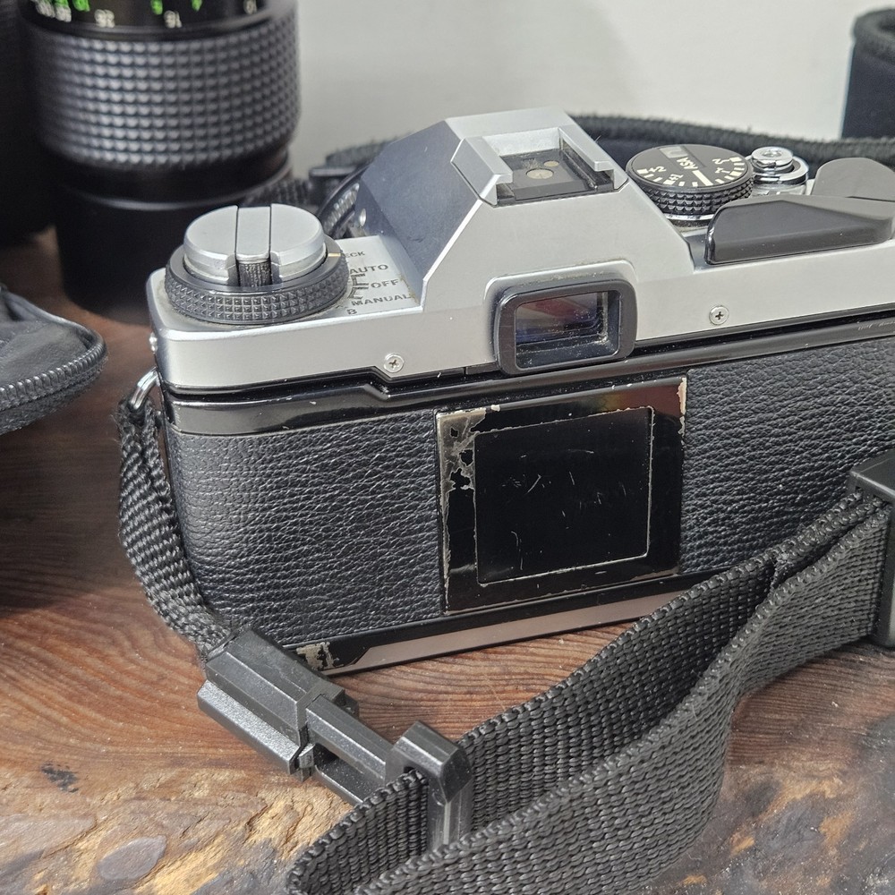 Capture moments with the classic Olympus OMG Camera, featuring a robust F. Zuiko 50mm lens known for its sharp and clear images. This vintage 35mm SLR camera boasts a manual focus system that allows for precise control over your shots. Ideal for film enthusiasts and photographers who appreciate the simplicity and reliability of analog photography. The Olympus OMG is crafted in Japan, reflecting the quality and precision that the brand is renowned for. In addition to the lens, this camera comes with a handy timer, perfect for those instances when you want to include yourself in the photo. Its compact series design makes it easy to carry, ensuring you can capture memories on the go with style and ease.