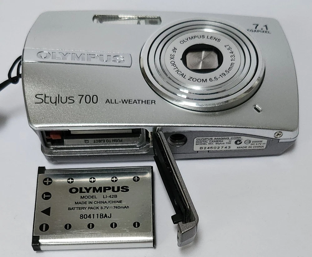 What You Will Be Receiving: Olympus Stylus 700 7.1MP All-Weather Digital Camera Silver Tested Working. Screen is Blurry, but Photos Come Out Great. Pictures are not affected. Battery is Included. No Charger & No Memory Card. Please see photos for details. Tracking number provided once shipped (Priority) Message for any Questions!