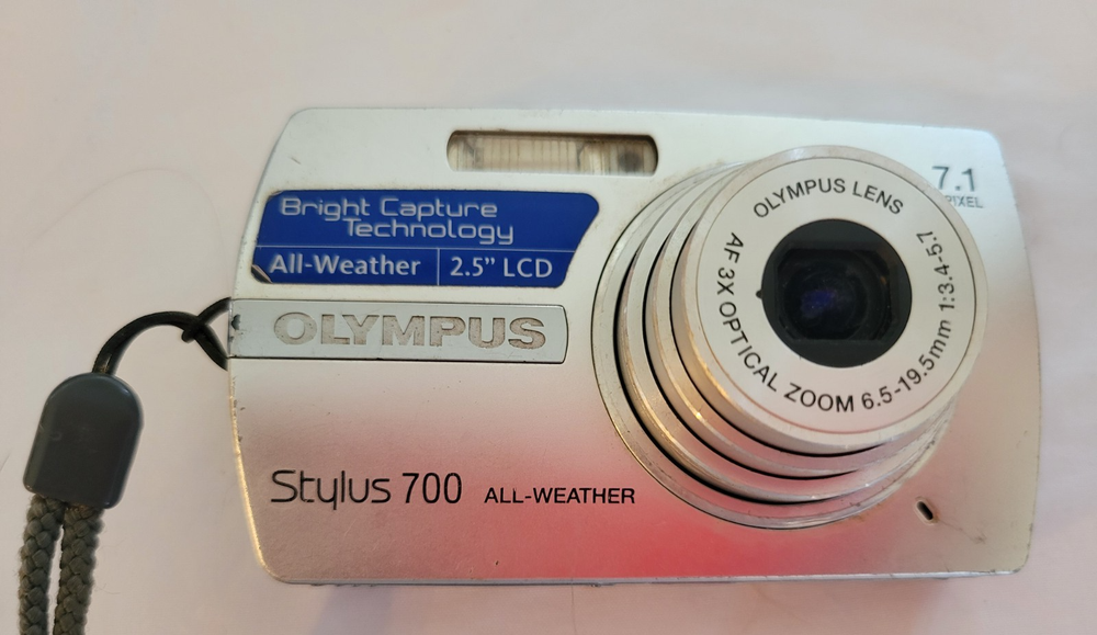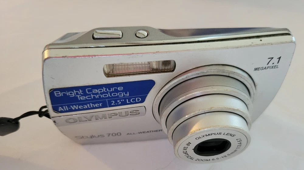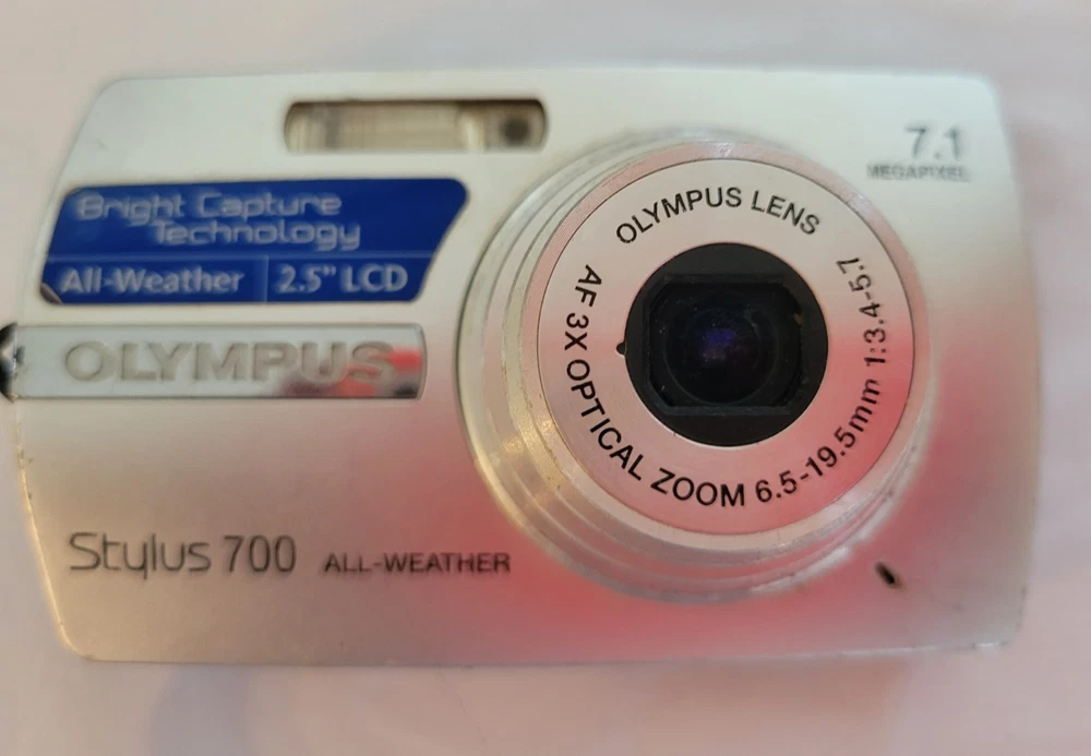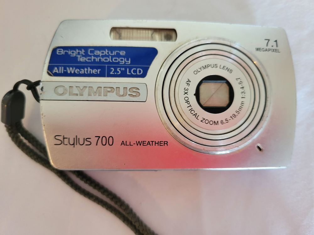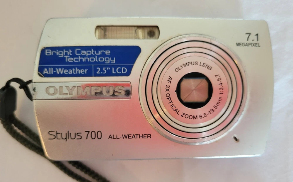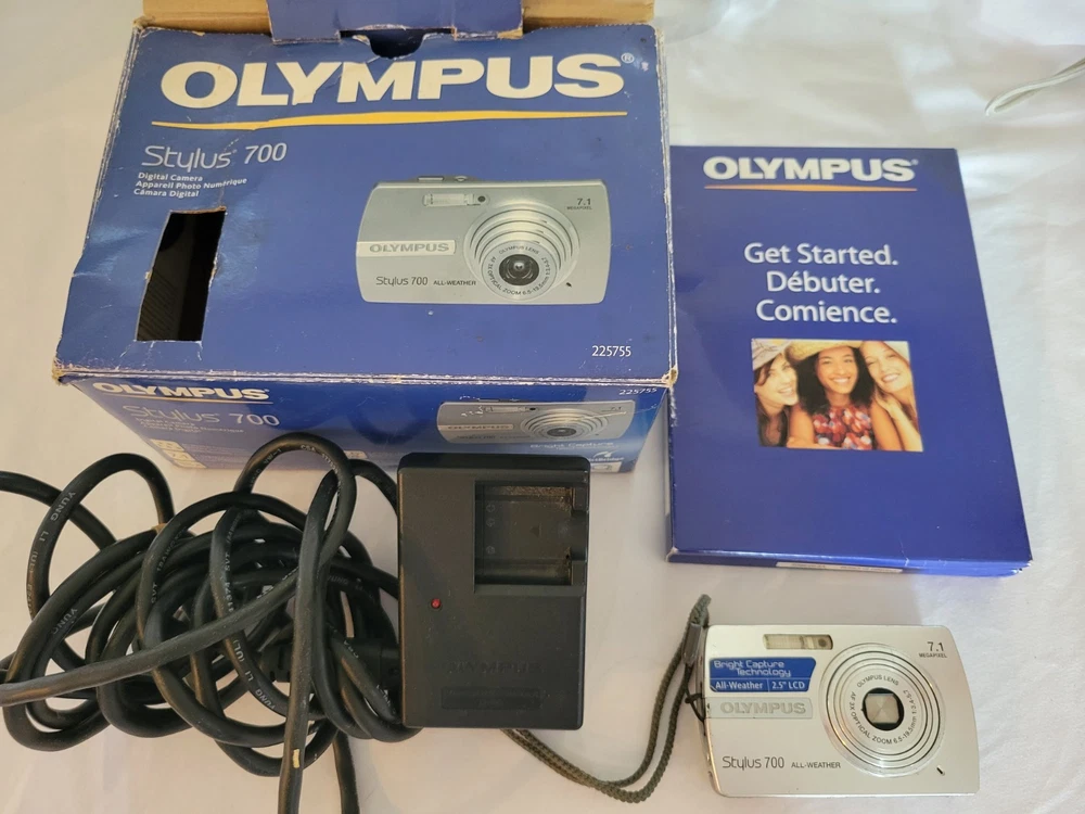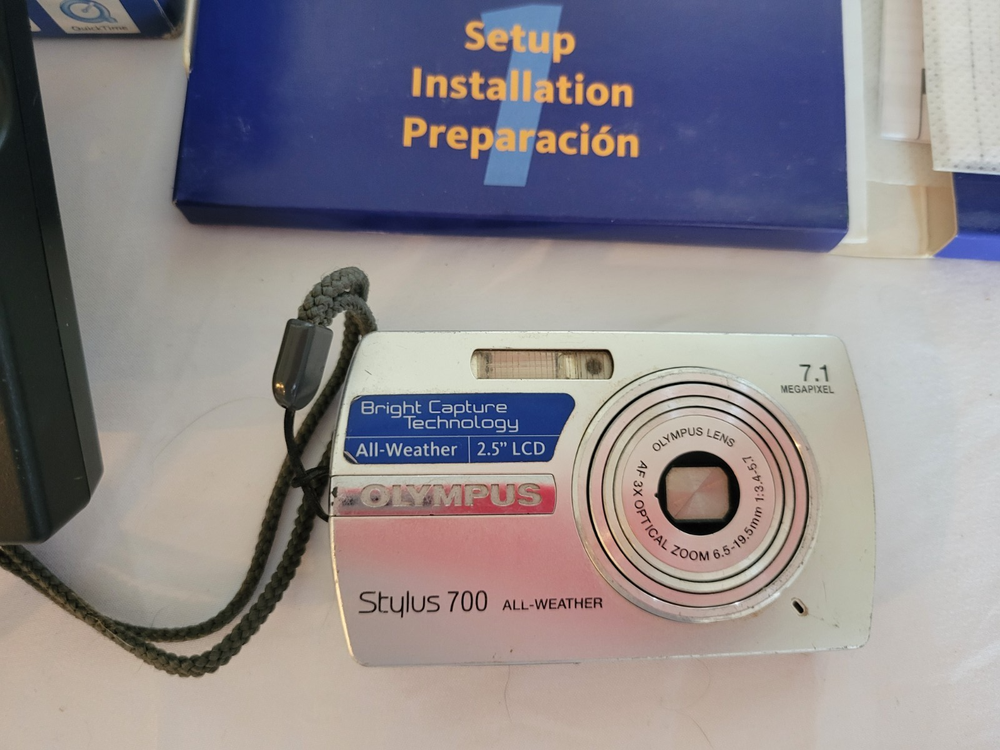 Olympus Stylus 750 7.1MP Digicam Digital Camera Compact, point-and-shoot camera with a 5x optical zoom lens and a 2.5-inch LCD screen. 20 year old camera still works comes with battery, manual with disc, AND CHARGER Key Features: Camera is in working condition has normal wear for age- box has wear 7.1 Megapixel: Captures detailed images. Weatherproof: Designed to withstand various conditions, including potential water exposure. 5x Optical Zoom: Allows for closer shots without losing image quality. Compact Size: The camera is small and easily portable, similar in size to a credit card. LCD Screen: A 2.5-inch screen for image viewing and camera operation