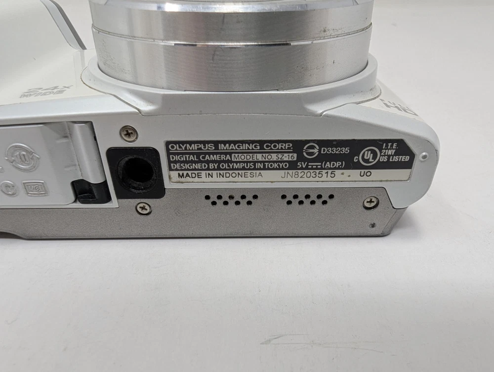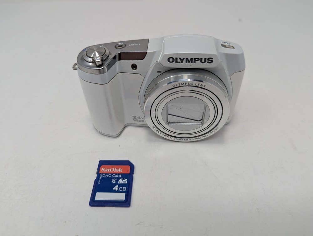 Color:WhiteSeller Notes:“Camera, 2 New Batteries with Charger, 4 GB SD Card, Tested, see all images”Brand:OlympusOptical Zoom:24xMPN:V102100SU-SKgtin13:n/aType:CompactCountry/Region of Manufacture:JapanUPC:n/aDigital Zoom:4xModel:Olympus Stylus SZ-16Series:Olympus StylusItem Weight:8 Oz.