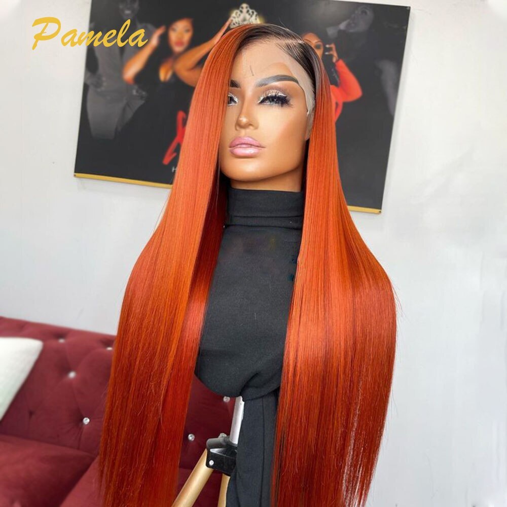 Ombre Ginger Orange Straight Brazilian Lace Front Human Hair Wig for Women