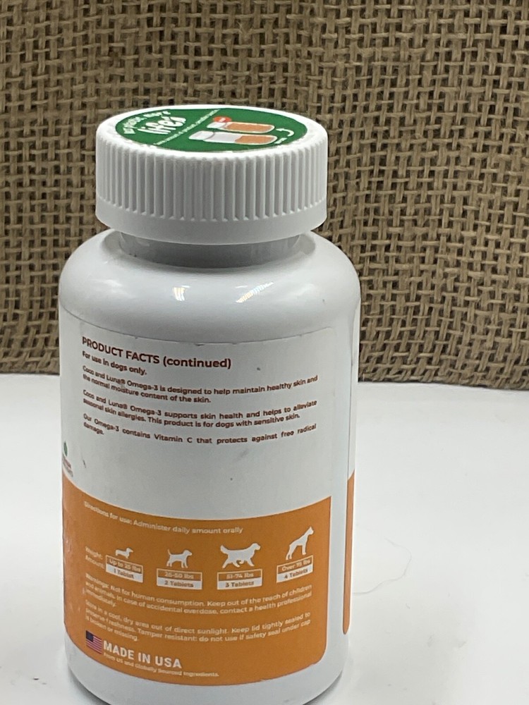 UPC:602217996819MPN:B4734Item model number:B4734Flavor:Bacon and LiverBreed Recommendation:All Breed SizesPackage Dimensions:4.49 x 2.17 x 2.09 inches; 4 ouncesAge Range Description:All Life StagesIs Discontinued By Manufacturer:NoItem Weight:4 ouncesBrand Name:Coco and LunaPattern:TabletsManufacturer:VITA PET LIFE LLCDirections:For DogsBrand:Coco and LunaSeller Notes:“New”Specific Uses for Product:CoatTarget Audience Keyword:dogsActive Ingredients:Fish Oil (18% EPA, 12% DHA) [Omega-3], Borage Oil (Omega ...Item Form:Tabletgtin13:602217996819Item Package Dimensions L x W x H:4.49 x 2.17 x 2.09 inches