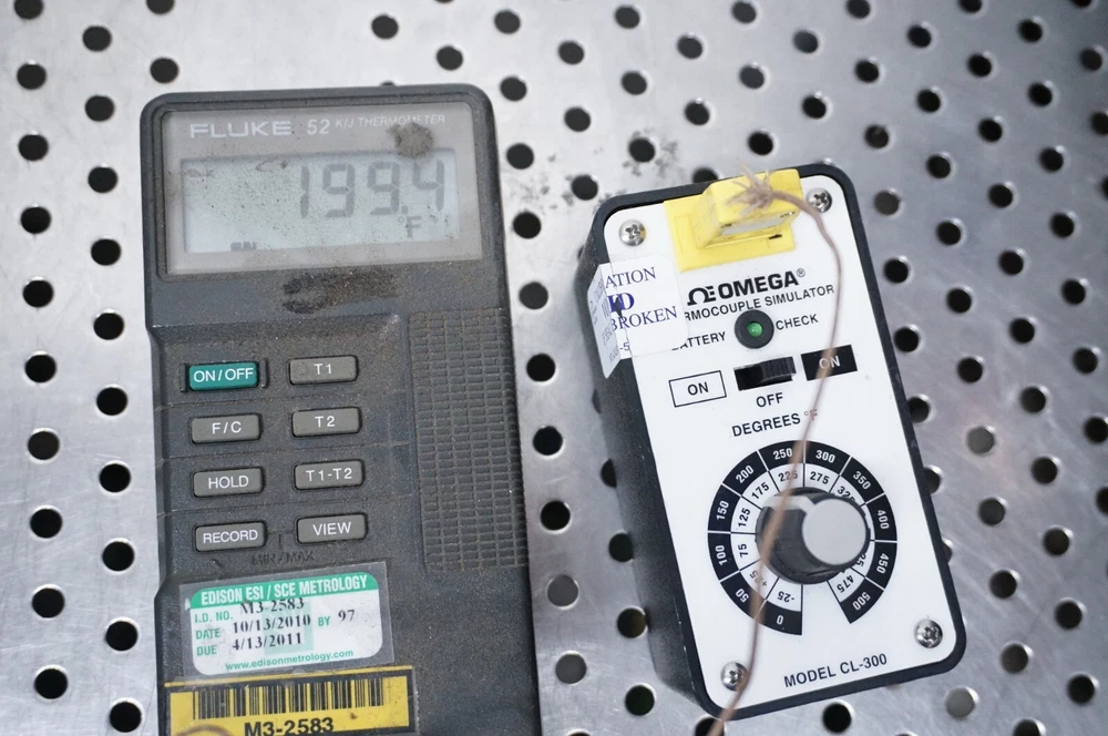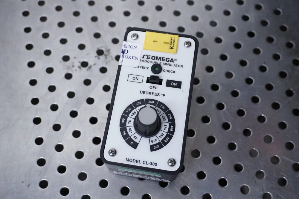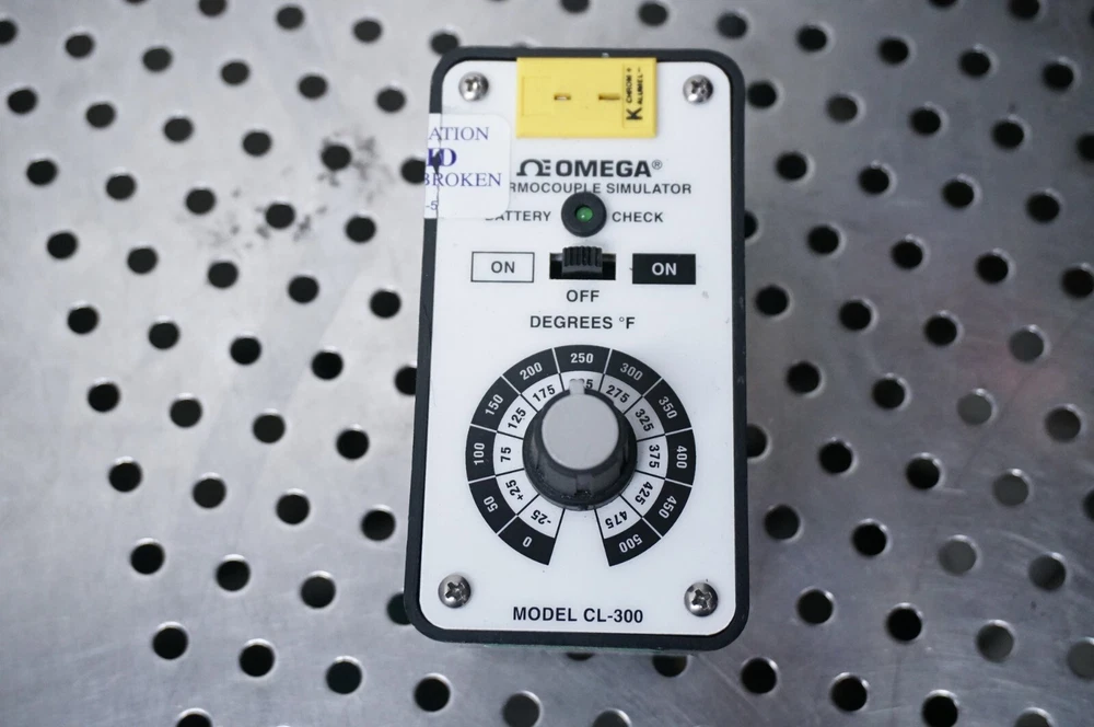 Up for sale is one Omega thermocouple simulator CL-300 Used item in good shape The battery holder was broken and was repaired as seen in the pictures Does not come with batteries You are buying the Omega CL-300 unit only Any questions are welcome S/H charge shown is for 48 states only, please contact for shipping rate outside that area Larger items will ship via UPS and will require a physical address UPS does not ship to P.O. Box Return accepted only if DOA or not as described Loc O1