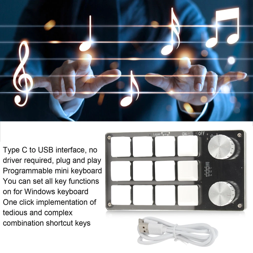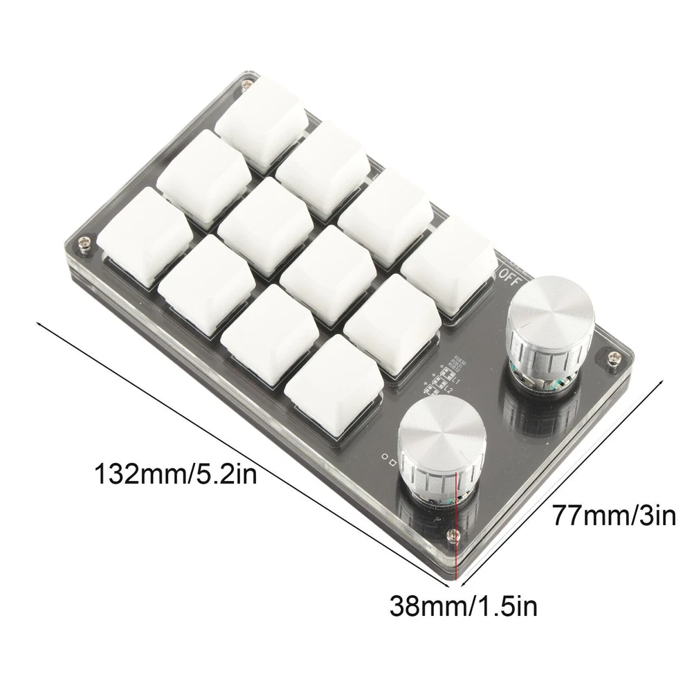 Feature: 1. Bring You Convenience: This is a 12 key programmable keyboard with adjustment knob, you can set the shortcut keys to reduce the cumbersome process. 2. Multifunction: The mini keyboard with multi functions, you can set all the key functions on the for Windows keyboard, and realize complicated and complex shortcut keys with one key. 3. Memory Function: The keyboard has a storage function, which can be used on systems that support usb protocol such as for Linux, for OS X, etc. after setting it up on the for Windows system. 4. Settable Knob: The knob can also be set, with functions such as, play the previous song, the next song, volume up, volume down, pause, play and other functions. 5. Portable and Easy to Use: Type C to USB interface, no need for drivers, plug and play, no conflict between the computer and multiple keyboards, convenient and easy to carry. 6. Wide Application: Programmable keyboard is suitable for office, game, music, media, industrial control, laboratory, production line testing and other fields Specification: Item Type: Macro Mechanical Keyboard Material: Acrylic, PCB Usage: Suitable for office, games, music, media, industrial control, laboratory, production line testing and other fields System Support: For Windows, for VISTA, for Linux, for OS X Button Life: Up to 50 Million Times Type: Dustproof Green Shaft Quantity of Keys: 12 Keys Size: Approx. 132 x 77 x 38mm / 5.2 x 3 x 1.5in (L x W x H) Current and Voltage: DC 5V/1A Working Temperature: -10℃-50℃ Package List: 1 x Keyboard 1 x USB Cable Note: This software can only be run on for Windows system temporarily, try to download it on the PC side of the computer, the setting software does not need to be installed, it can be run directly after opening it, and it will be automatically stored on the chain disk after setting, and then plug it into the USB protocol that supports the USB protocol. Use on for Linux, for OS X and other systems (the first time you run it, pay attention to the release of antivirus software and set it as a trusted file)!