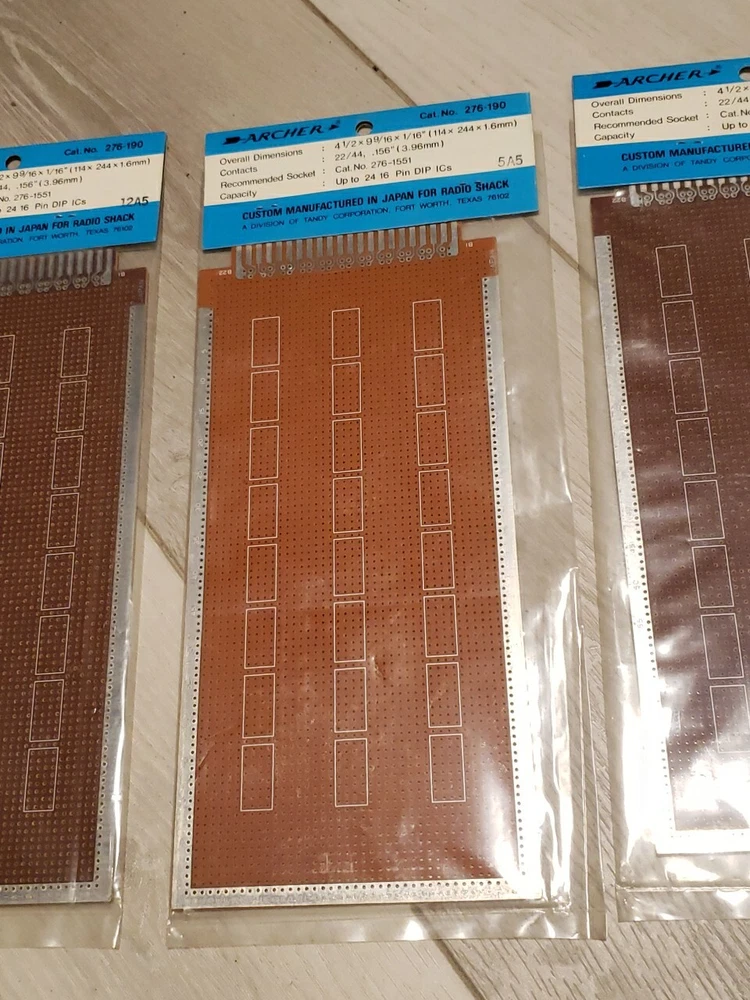 I have my One New Radio Shack Archer Plug-in PC Circuit Board #276-190 Interposed up for sale. View photos for details and condition. This listing is for one (three are available). Thanks for looking.