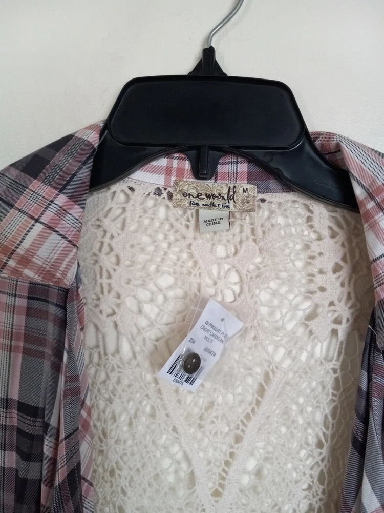 One World Womens Cardigan Medium Plaid Lace Back Open Drape Front Waterfall NEW Armpit-armpit: 16" Sleeve Length 27" Length: 29" AT Combined Shipment: USA : Highest item shipping cost + $3.00. for each subsequent item.Or, you can purchase as many items as you choose and pay the flat rate of $ for your Priority Mail Large Flat Rate Box which covers your entire order. Please read the disclaimer below. INTERNATIONAL SHIPMENTS: Highest item shipping cost {+ Item weight.} for each subsequent item. Please read the disclaimer below. DISCLAIMER on Shipping Costs: Our intention is to keep our shipping costs as low as possible. However, depending on the item purchased (weight) and the destination, shipping rates can vary; especially 30 Day?s No Questions Asked Returns Policy: Your satisfaction is very important to us. We have a 30 days NO QUESTIONS ASKED returns policy. The item must be returned in the condition in which it was purchased. If there are labels/tags they should not be removed. If they are, the item will be sent back to you. ANY SHIPPING COSTS WILL NOT BE REFUNDED. BOTH WAYS, receiving and any returns. Please contact us for the return shipping address and authorization. ALL COMMUNICATIONS MUST BE IN WRITING & TAKE PLACE THROUGH THE EBAY SITE ONLY. No private direct email correspondence. A customer care rep. will respond to you within 24 hrs (Mon-Fri). Once we have received the merchandise and inspected it, please allow 72 hours for a refund to be issued. NO See my other listings for more great items! We accept PAYPAL. Also we have a virtual terminal with PayPal through which we can accept Visa, MasterCard, Amex, and Discover. If you do not have a PayPal account, it takes virtually minutes to open International shipments: PLEASE DO NOT PAY until we determine your shipping costs. Most of our items also have an International Flat-Rate. Although, if due to the destination or the weight we are unable to honor the rate mentioned in the item?s listing, we will cancel your order and leave you positive feedback. Usually we use the US Postal Service. The best international rate for an international shipment is First Class (up to 4 lbs.)If your items exceed 4 lbs. we may pack them into two separate packages (and notify you of this).You still are eligible to take advantage of the combined shipping rates, even if we have packed them into two separate packages. The fees for packaging, shipping, insurance, Customs Duty Charges on international shipments are all the responsibility of the Buyer and are not included in the purchase price. If the item(s) are gifts, we could indicate ?GIFT? on the customs form so you would avoid paying more on duty.