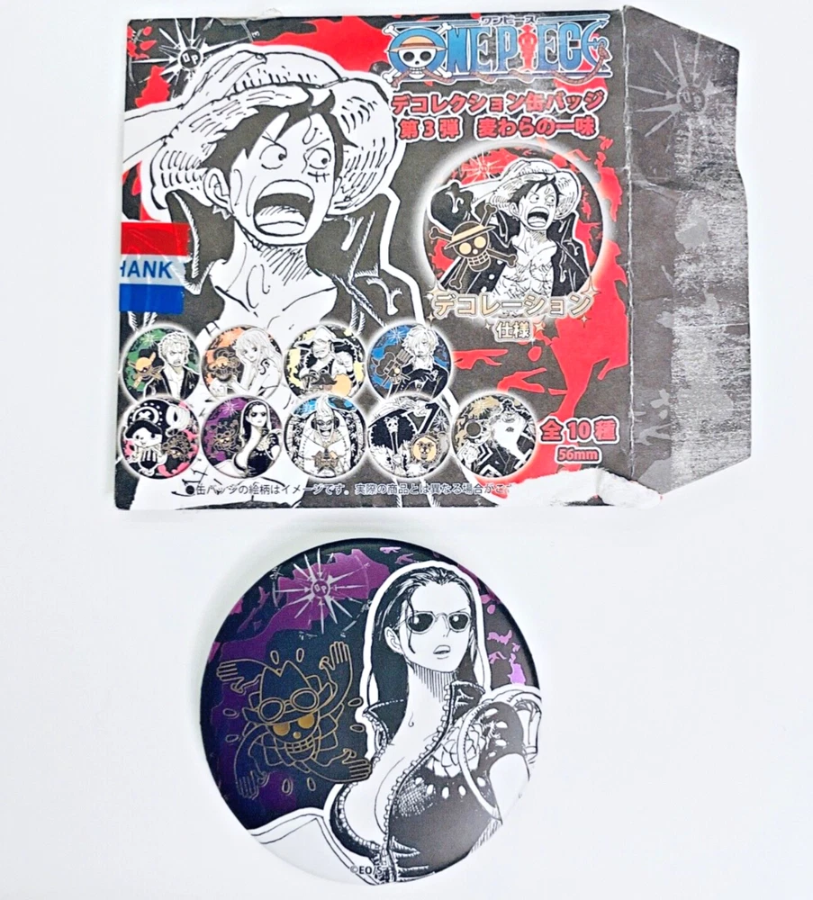 This is a Robin can badge that is part of the One Piece can badge collection sold at Mugiwara Store and Jump Shop in Japan. I would recommend these to anyone who likes Robin. As a bonus, I will also include a Japanese version One Piece card with Robin's picture on it. International Buyers -Please Note: Import duties, taxes and charges are not included in the item price or shipping charges. These charges are the buyer's responsibility. Please check with your country's customs office to determine what these additional costs will be prior to bidding/buying. These charges are normally collected by the delivering freight (shipping) company or when you pick the item up -do not confuse them for additional shipping charges. We do not mark merchandise values below value or mark items as "gifts" -US and International government regulations prohibit such behavior.