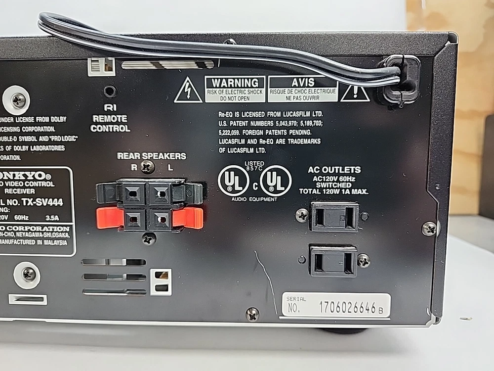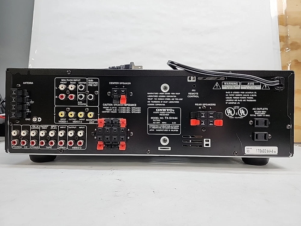 Onkyo Audio Video Receiver TX-SV444 for Tape Radio Phono CD TV - Sound TESTED Item's sound is tested and in good working condition. Please refer to pictures for all questions regarding the condition of the item. If you do not see something in the pictures, it is most likely not included unless otherwise stated. Item is sold as is. Terms of Sale If there are any problems or comments, we look forward to hearing from you and will respond to any inquiries within 48 hours. We want you to be completely satisfied with your purchase and want to make things right! We accept returns within 30 days of delivery, however the buyer will be responsible for a 20% restocking fee. Buyer is responsible for return shipping costs! Please contact us before returning! Items are only shipped after payment is received! Be sure to double check your address when placing the order! Shipping Information We accept PayPal as it is the safest and easiest for buyers. Please pay within 48 hours of purchase. If item is not paid for after 5 days, it will be relisted. Delivery date will be according to the USPS or Fedex tracking system. We appreciate your interest! Thanks for looking and we hope you have a good day!