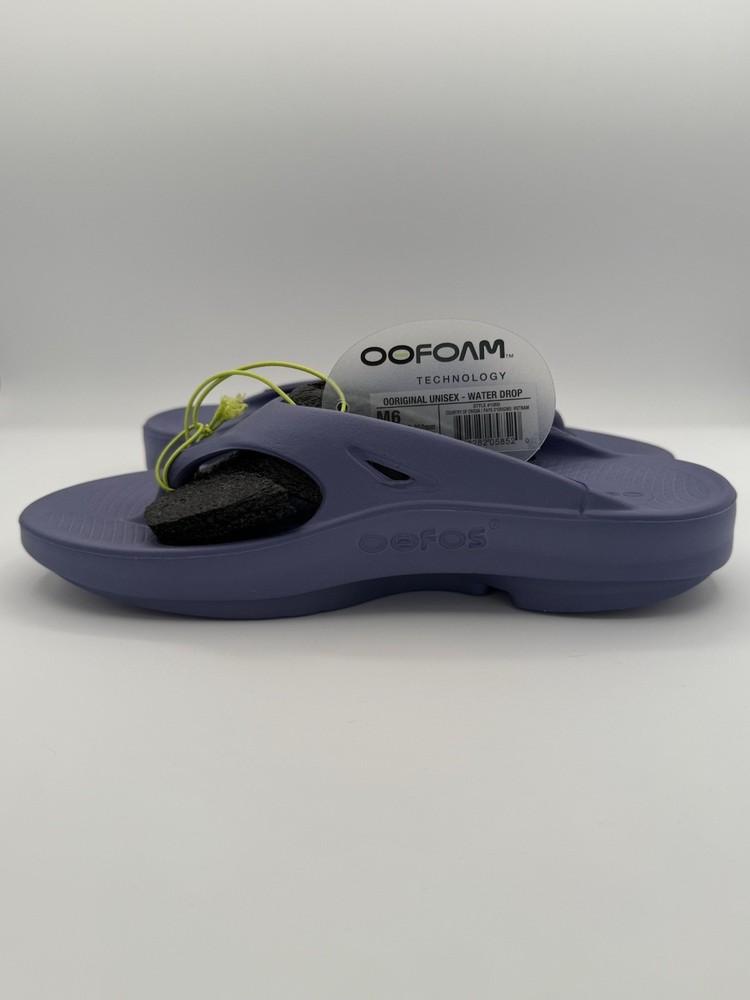 This pair of Oofos OORIGINAL sandals in water drop blue is perfect for casual occasions and can be easily slipped on with a pull-on closure. The beaded accents add a touch of style, while the foam outsole and lining materials provide comfort and insulation. These sandals are suitable for all seasons, including winter, summer, fall, and spring. The Oofos OORIGINAL sandals have a solid pattern and a blue color that gives off a casual vibe. The synthetic upper material and foam insole material ensure durability and support. These sandals are available in multiple sizes, including US size 39, AU size 6, and UK size M5W6. The Oofos brand is known for its quality products, and this pair of sandals is no exception.