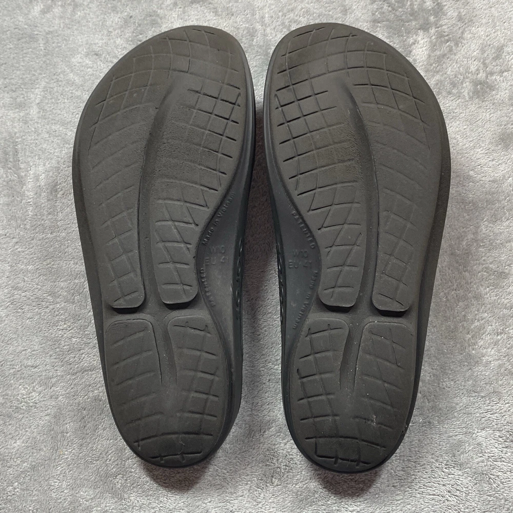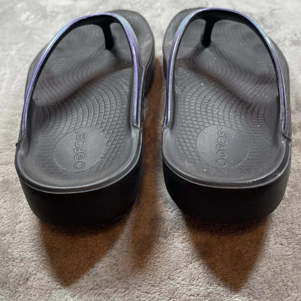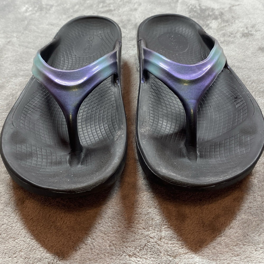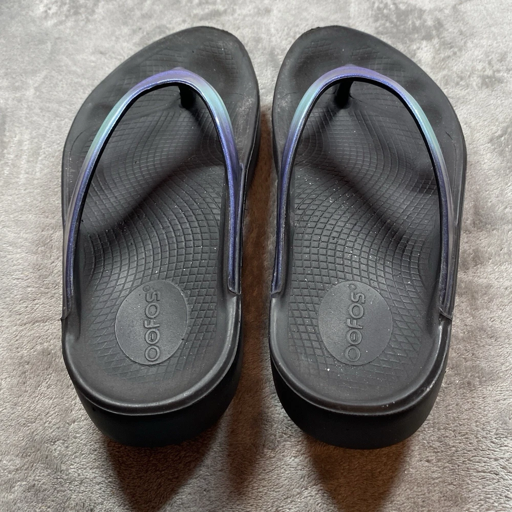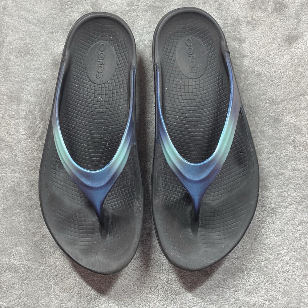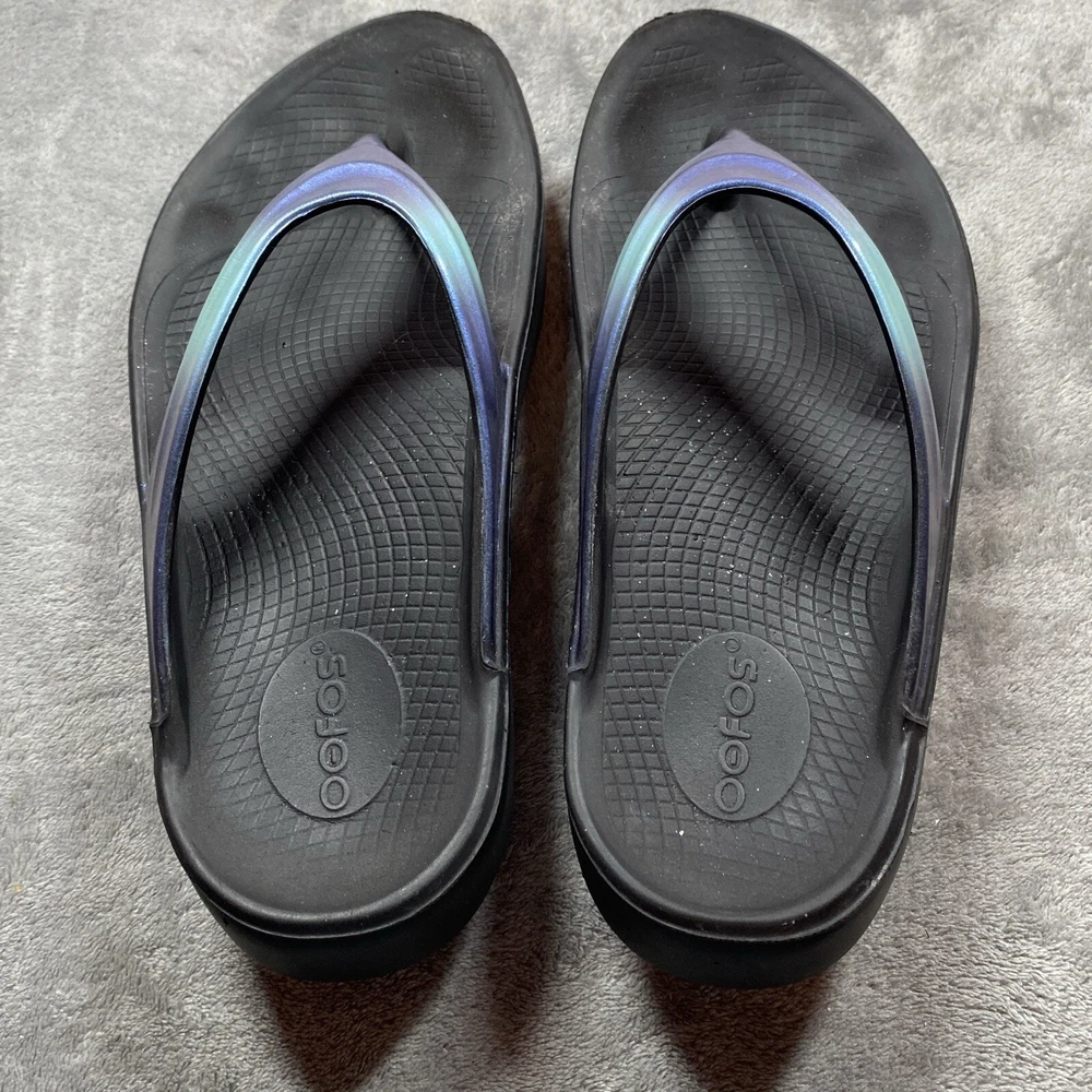 Oofos Oolala Luxe Recovery Flip Flops Womens SZ 10 Black Atlantis Thong Sandals Fair to good pre-owned condition. All clothing is subject to stretch or shrink from use and cleaning by prior owners. See photos for the actual item available. Feel free to contact me with any questions. Elevate your summer footwear collection with these Oofos Oolala Luxe Recovery Flip Flop Thong Sandals in Black and Blue. These stylish sandals feature a ombre pattern, slip-on closure, and arch support for maximum comfort. The rubber upper material provides durability, making them perfect for outdoor activities or travel. With a standard shoe width and breathable design, these sandals are perfect for the summer, fall, or spring seasons. The Oofos Luxe Sandal product line offers a cushioned and lightweight feel, making them ideal for school, beach, hippie, bohemian, college, or casual occasions. The sandals are available in women's size 10. Shop our store with confidence as we offer 30-day returns on all purchases. Additionally you can save money by making multiple purchases to take advantage of our discount shipping policy. You will pay the highest shipping cost for a single item in your cart and $3 for each additional item.