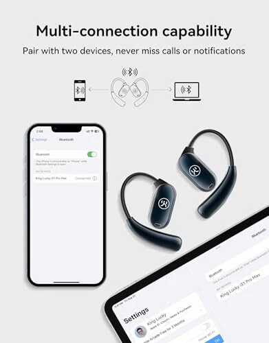 Return Policy Fast Delivery Trusted seller Open Ear Headphones Wireless Bluetooth,Lightweight Open Ear Earbuds with Mic, Noise Cancelling, IPX5 Waterproof, Dual Link, Comfortable for Running,Sports,60Hrs, for Small Ears (Black) Product Description Comfortable, lightweight and stable wearing:Our Open-ear headphones redefine comfort and stability. Made from soft silicone, they cling like a second skin, offering unmatched comfort without pressure, even after prolonged wear. The owls hanging ear design s excellent stability, keeping the headphones secure during sports or everyday activities. Additionally, this design effectively disperses ear pressure, providing a feeling of freedom and relaxation. At just 0.25 oz per earbud, our open ear headphones are nearly weightless, allowing you to concentrate on your music or sports without any distraction from the earbuds. Superior sound quality and clear call:Elevate your audio experience with i31pormax true wireless headphones, designed for superior sound quality and clear calls. The 18.7mm racetrack-shaped custom driver features a motor coil 35% larger than conventional ones, delivering outstanding clarity in high notes, stable mid-tones, and deep bass. Perfect for enjoying music and videos, these open ear headphones provide an immersive auditory experience. With dual mic ENC noise reduction, you can make calls in noisy environments with confidence, as these headphones effectively filter out background noise, ensuring your voice comes through clearly for seamless communication. LED digital display and 60hrs playing:Never worry about battery life again with the i31max open ear earbuds. The LED digital liquid crystal display on the charging case lets you check playback progress and battery levels easily, whether it’s day or night. Enjoy an impressive 8 hours of playtime on a single charge, and extend it to 60 hours using the charging case. Even in a hurry, a quick 5-minute charge provides an additional 1 hours of playtime, ensuring you stay powered up and ready to go. These open-ear Bluetooth wireless earbuds combine convenience and long-lasting performance for your everyday needs, making them the perfect companion for music, podcasts, and calls. Bluetooth5.3 and multi-point connection:Experience seamless connectivity with i31pormax open ear wireless Bluetooth headphones. Equipped with the latest Bluetooth 5.3 chip and multi-point connection functionality, these headphones offer wide compatibility with iPhone, Android, and Windows systems. Effortlessly switch between devices like mobile phones, computers, and laptops, ensuring stable transmission and meeting your needs for multi-device collaboration. Easily transition from a conference call on your laptop to streaming music on your phone or switching between any two devices such as mobile phones, computers, and laptops, enhancing both your work and entertainment efficiency. Humanized touch control and ipx5 waterproof:Discover the convenience of humanized touch control and IPX5 waterproof technology with the i31pormax open ear wireless Bluetooth headphones, a superior choice over bone conduction headphones. Our R&D team has optimized the touch control area to be on the side of the mic, eliminating issues with accidental touches during vigorous activities. Additionally, each earbud is treated with a waterproof nano-coating and boasts an IPX5 rating, ensuring they remain safe from sweat and humidity. This makes them perfect for use during exercise, giving you peace of mind and reliable performance. Shipping Returns Payment Shipping Shipping is FREE to all addresses other than APO/PO boxes in the lower 48 states. All our stock ships from US-based warehouses. Shipped via USPS or UPS (depending on location and package weight) Unless stated otherwise, all orders will ship within 24-72 hours of your payment being processed. Check our feedback to see the great reviews of FAST shipping we offer. Returns Seller does not accept returns Payment We currently accept payment via eBay managed payments only. Once payment is cleared, we will dispatch your shipment within 1-3 business days. Please refer to the "Shipping" tab for more information regarding shipping speed to your destination.