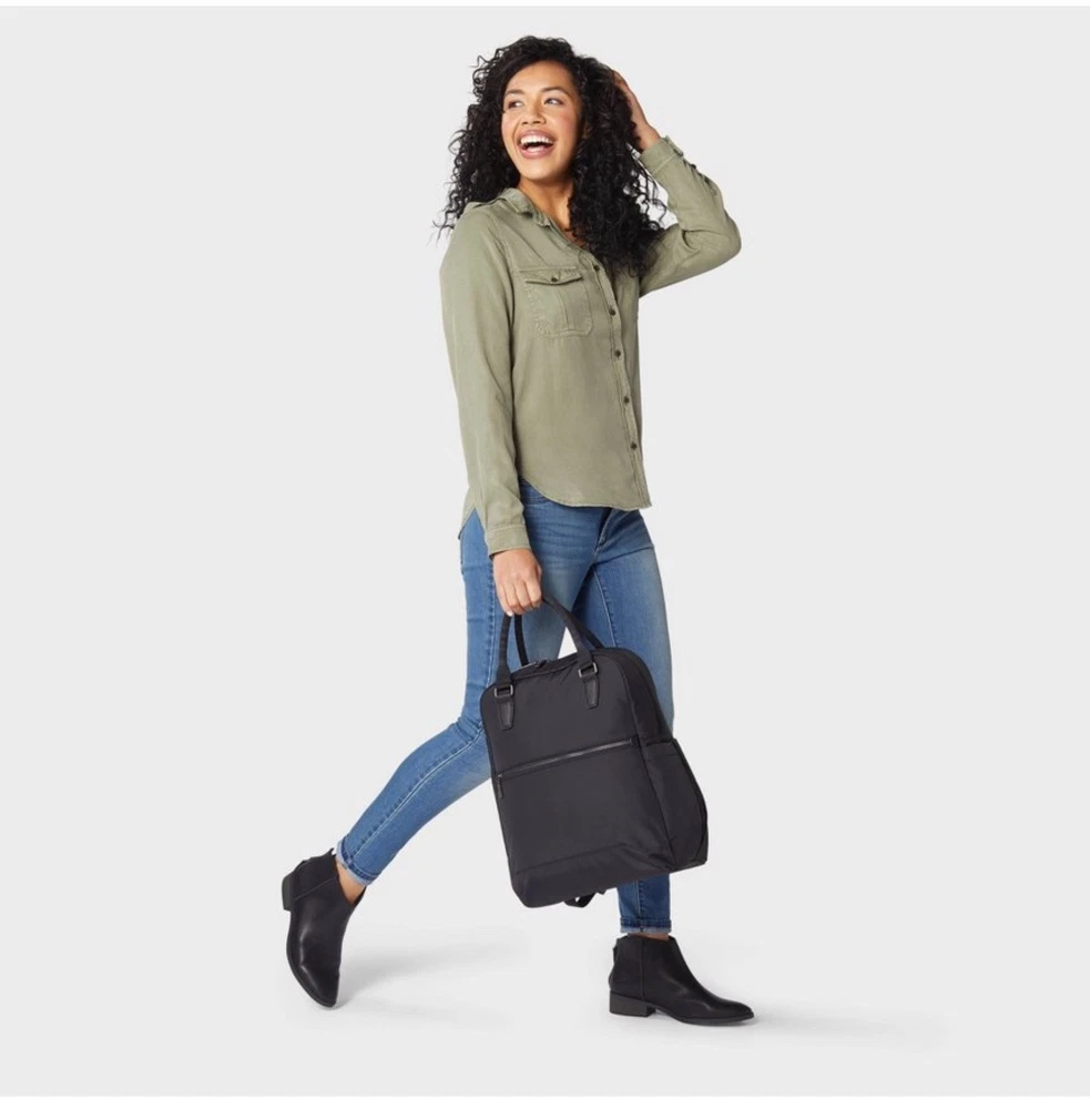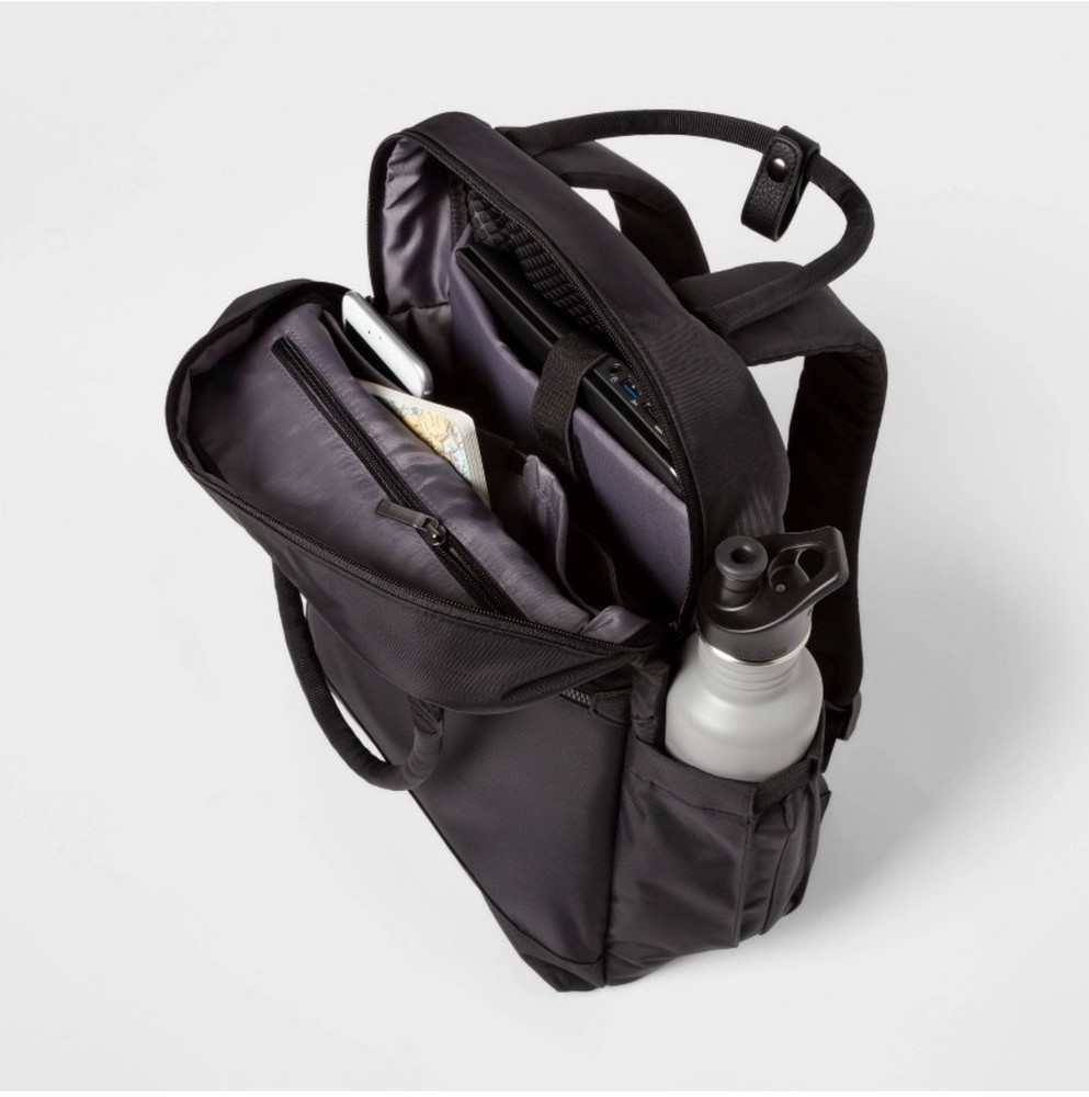 gtin13: 618842409174 Type: Backpack Item Width: 6" Material: Nylon Model: Commuter Backpack Item Height: 16" Brand: Open Story Compatible Laptop Size: 15 in Laptop Features: Padded Color: Black UPC: 618842409174 Item Length: 12"