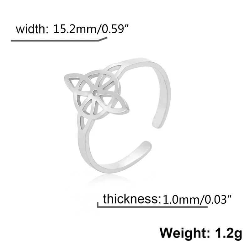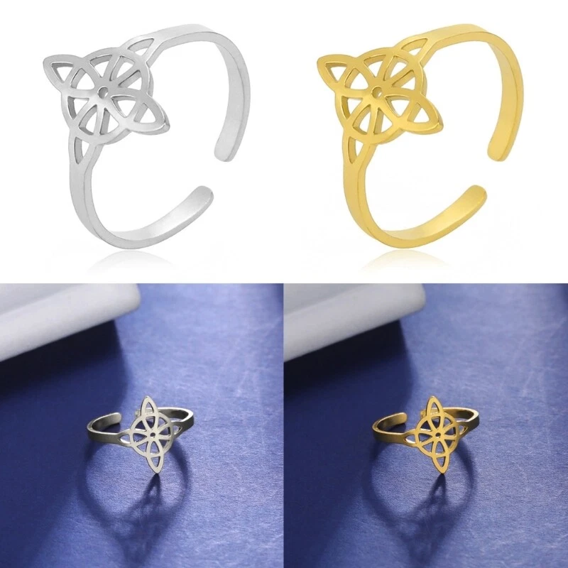 Features: stainless steel which has the advantages of not fading, not easy to scratch and leaving marks, and not deformed. Adjustable size fits most people, so you can buy it without any worries. Witches knot shape deep engrave pattern, clearly and never fade. for your daughter, wife, mother, sister or Suitable Day, Easter, Mother's Day, communion, graduation, Christmas, birthdays or anniversaries. Specifications: Stainless Steel Color: Golden/Steel Color Weight: Approx. 1.2g Width: Approx. 0.59inch(15.2mm) Thickness: Approx. 0.03inch(1.0mm) Package Includes: 1x Stainless Steel Witch Knot note: Please allow 1-2cm errors due to manual measurement. Due to the difference between different monitors, the picture may not reflect the actual color of the item.