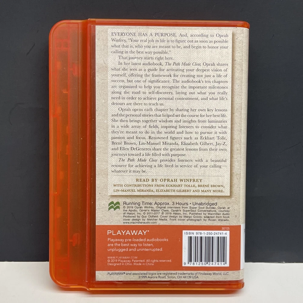 Oprah Winfrey The Path Made Clear Playaway All-In-One Audiobook Unabridged Library Edition in Hard Clamshell Case Listening Time: 3 hours Playaway Information : Plug Earphones, Speakers or Car Adapter into the Universal Headphone Jack Requires One (1) AAA Battery Player has 5 Narration Speeds Power/Lock Button & Backlit Screen Volume Control, Play/Pause Button Reverse or Fast Forward by Chapter or Within Chapter Please Review All Photos Combined Shipping Available Visit Our Store for More!