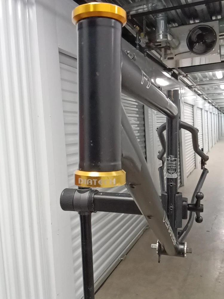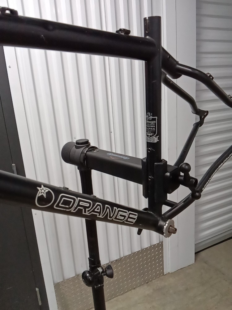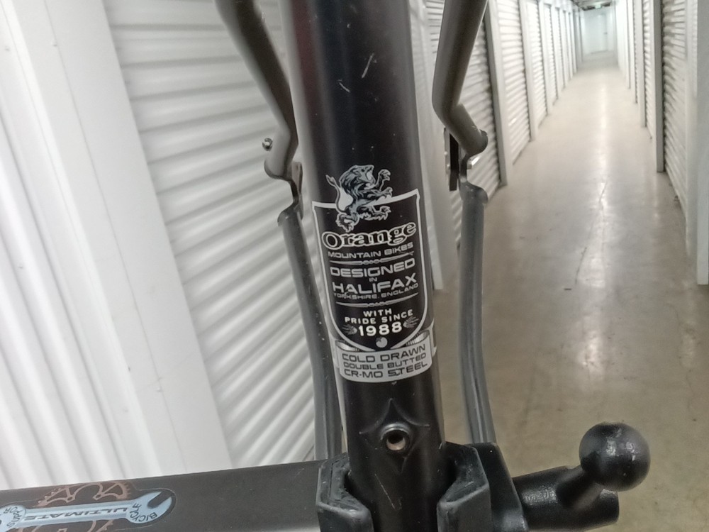 British brand, orange hatdtail mountain bike. Cr-mo. Frame, bottom bracket, dia tech, only 1 rear hub attachment.