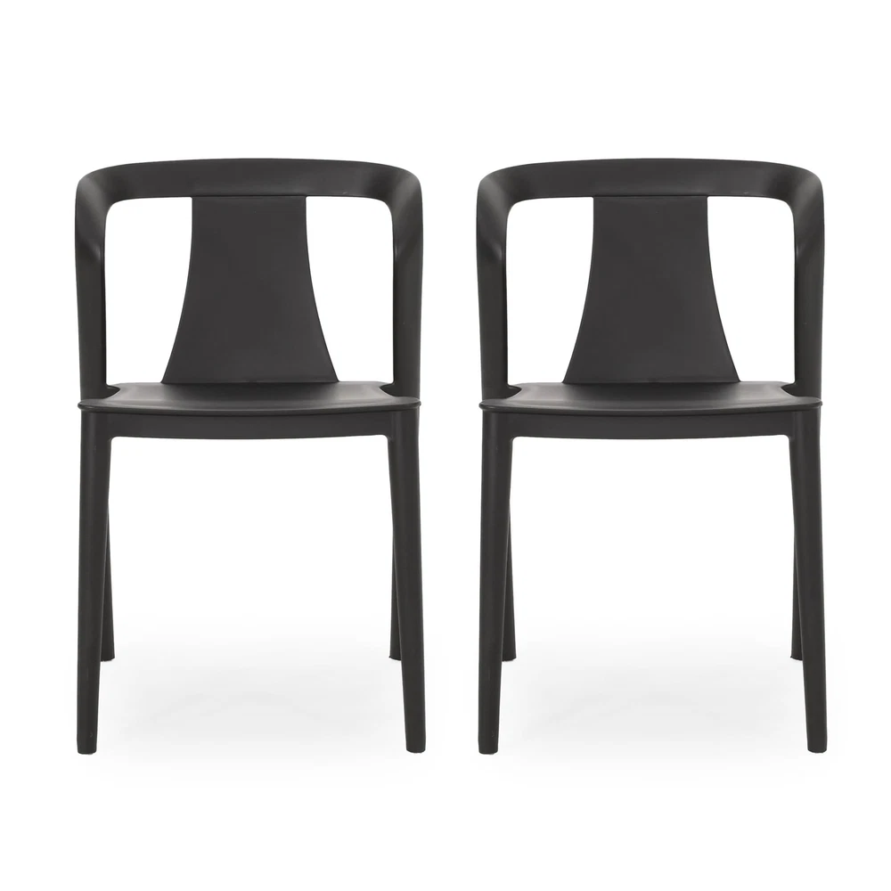 Featuring weather-resistant properties and a unique plastic blend material, this outdoor chair set provides astonishingly stable frames that will last you for years to come. This minimalistic design balances clean-cut lines and elegant curves to create an impressive look of sturdy structure and stylish comfort. Finished with a curved backrest, our chair set is sure to transform any dining set or backyard space into a refined masterpiece.Features: Includes 2 dining chairs Made with polypropylene resin Available in white or black Hand-crafted detailing No assembly requiredDimensions: Overall: 21.50 inches deep x 19.50 inches wide x 30.50 inches high Seat: 17 inches deep x 17.20 inches wide x 18 inches high Free Shipping Over $49.99* Details Orchid Outdoor Stacking Dining Chair (Set of 2) by Christopher Knight Home - Product Description: Featuring weather-resistant properties and a unique plastic blend material, this outdoor chair set provides astonishingly stable frames that will last you for years to come. This minimalistic design balances clean-cut lines and elegant curves to create an impressive look of sturdy structure and stylish comfort. Finished with a curved backrest, our chair set is sure to transform any dining set or backyard space into a refined masterpiece. Features: Includes 2 dining chairs Made with polypropylene resin Available in white or black Hand-crafted detailing No assembly required Dimensions: Overall21.50 inches deep x 19.50 inches wide x 30.50 inches high Seat17 inches deep x 17.20 inches wide x 18 inches high