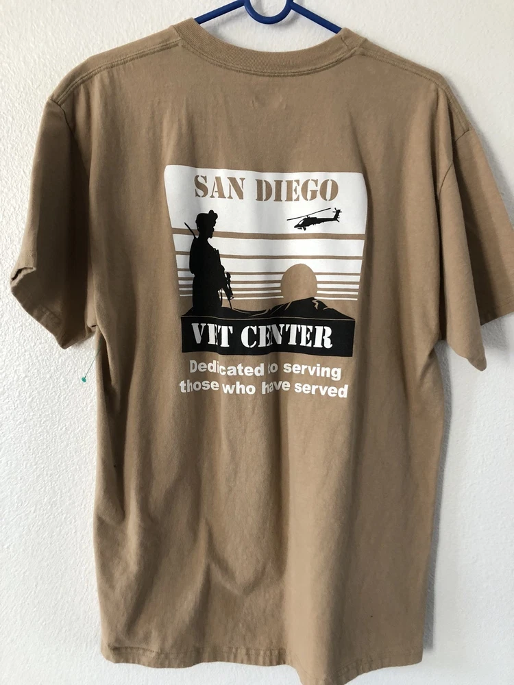 Extremely Rare Original vintage San Diego California VET CENTER Dedicated To Serving MENS 2 sided T-shirt Is up for sale. The T-shirt is still in very good condition as exactly displayed on the above pictures. Actual measurements: TAG size:Large Pit to pit: 21" Collar to hem: 28" I will ship within one day of receiving payment payment. Won't last!