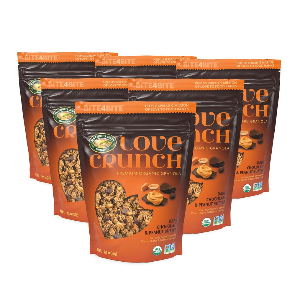 Store New Arrivals Add to Favorite View Feedback Organic Dark Chocolate & Peanut Butter Granola, 11.5 Oz (Pack of 6), Non-Gmo, Fair Trade, by Nature'S Path Description Item model number 16207U2 Age Range (Description) Adult Is Discontinued By Manufacturer No Country of Origin USA Specialty Organic Flavor Name Dark Chocolate & Peanut Butter Units 69.0 Ounce Item Form Flaked Package Dimensions 13 x 9.5 x 5.83 inches; 0.11 ounces Size 11.5 Ounce (Pack of 6) Contains: 6 Pouches of Love Crunch Dark Chocolate & Peanut Butter Granola, 11.5 ounces each Our Love Crunch is made with passion and purpose to help the world eat, act and live out of love! We’ve thoughtfully created each product to stand for what you cherish and love. The chocolate chunks, roasted peanuts and great hearty crunch is the perfect blend for a go getter’s morning. If you’re a peanut butter kind of person, we’ve found the perfect match for your taste buds. You will savor this sweet nutty organic peanut blend. The roasted protein packed peanuts provide a natural energy boost. This delicious granola is a blend and includes whole grain rolled oats and a dash of sea salt. Show your body some love with the 13g of whole grains per serving and organic ingredients. Love Crunch supports food banks across North America by donating a minimum of $2 million worth of food every year through our Bite4Bite program. Love Crunch Dark Chocolate and Peanut Butter granola is a blend of rich flavors for a tasty crunch that you will cherish. The granola has a mix of organic roasted peanuts and dark chocolate chunks and is the decadent snack you’ve been looking for. It also features whole grain rolled oats and a dash of sea salt. Enjoy this granola in the morning for an indulgent breakfast. The crunchy granola clusters will make you smile with delight. Our Love Crunch is made with passion and purpose to help the world eat, act and live out of love! We’ve thoughtfully created each product to stand for what you cherish and love. We believe in spreading love with our Love Crunch! Our Bite4Bite program donates a minimum of $2M worth of food every year to food banks in North America. ABOUT US We offer the best prices around on high quality products. Our E-store includes media such as books, movies, music and games while offering electronics, toys, sporting apparel, clothing, tools, general home, garden items and more. SHIPPING We are always working hard to ensure your package arrives as soon as possible. Please understand that some factors like weather, high postal traffic, and the performance of shipping companies are outside of our control. We offer free shipping to the lower 48 states and ship within 2 business days of payment, usually sooner. We do not accept P.O. Boxes. Please provide a physical address. RETURNS We offer a 30-Day Return Policy on items which you are not completely satisfied with. You have the option for a full-refund or an exchange of the item. No returns are available on items shipped outside of the USA. PAYMENT We accept PayPal. CONTACT US This page content is yet to come Please ad us to your favorite seller and visit again later Thank You