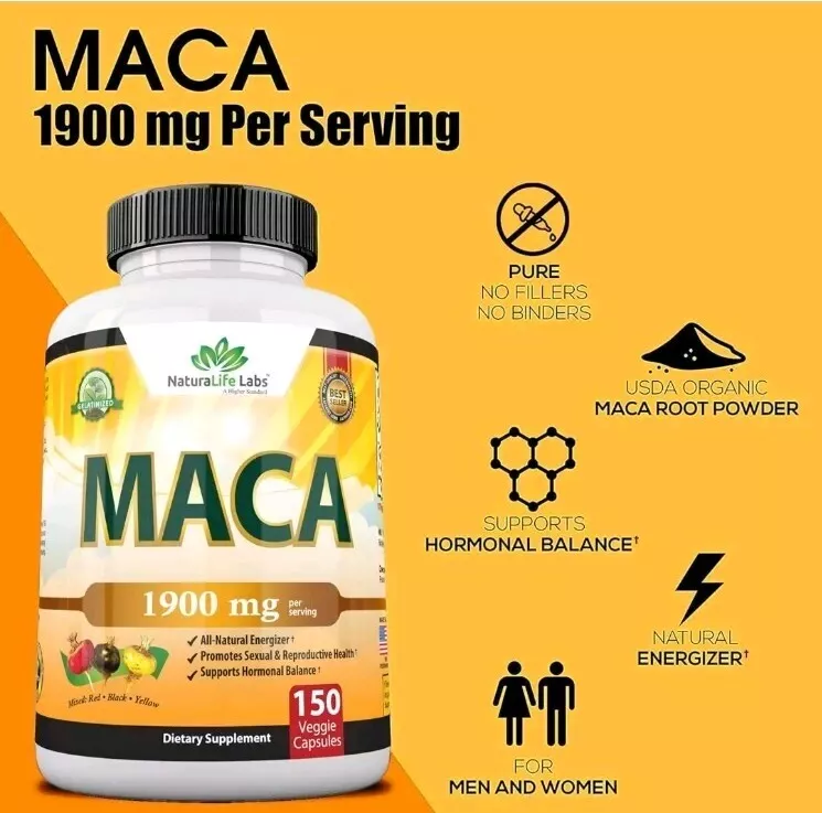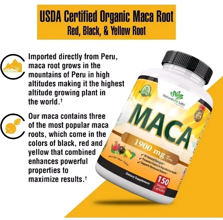 Expiration Date:12/2026Active Ingredients:Ginseng, Maca Root, Siberian Ginseng, macaCountry/Region of Manufacture:United StatesFeatures:OrganicCustom Bundle:NoBody Area:BodyForm:capsulesCountry of Manufacture:United StatesItem Weight:4 ozMain Purpose:Anti Inflammatory, Antioxidants, Cell Regulation, Energy & Endurance, Men's Health, Metabolism, Mood Support, Multi-Vitamin, Muscle Growth, Pre-Workout, Sexual Health, Women's Health, SUPER FOODAdministration:OralUPC:Does not applyBrand:Organic RootDepartment:Men, Unisex, WomenWhen to Take:After MealType:MacaType of Diet:Herbal, Natural, Paleo, VeganNOTE 1:THIS IS NOT TO /TREAT/ ANY MEDICAL CONDITION/ NOT TREATMENT/gtin13:Does not applyDosage:1000Number of Pills:120Gender:UnisexNOTE 2:MINIMUM USE OF 90 DAYS IN ADVANCEModified Item:NoWARNING:THIS IS A NATURAL PRODUCT AS SUPPORT SUPPLEMENT NOT MEDICATIONIngredients:Black Maca, MacaFormulation:Capsule