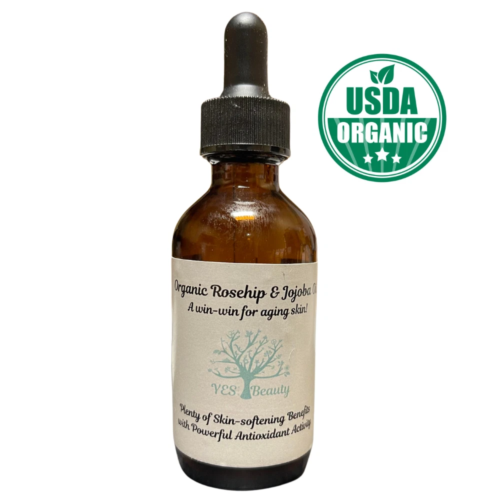 Turn back the clock with the power of Organic Rosehip Oil and Jojoba Oil —your ultimate duo for radiant, youthful skin. This luxurious blend is packed with natural antioxidants, vitamins, and essential fatty acids that deeply nourish and rejuvenate, making it the perfect addition to your skincare routine. 🌿 Key Benefits: Fights Signs of Aging: Rosehip Oil is rich in Vitamin C and essential fatty acids that help reduce the appearance of fine lines, wrinkles, and age spots. Deep Hydration: Jojoba Oil closely mimics your skin’s natural oils, providing long-lasting moisture and restoring balance. Brightens & Evens Skin Tone: Rosehip Oil helps promote a brighter, more even complexion, leaving you with a glowing, youthful look. Improves Skin Elasticity: Together, these oils improve skin’s texture and elasticity, making it feel smoother and more supple. 🌟 Why You'll Love It: ✅ 100% Organic, cruelty-free, and free from harsh chemicals ✅ Perfect for all skin types, especially aging or dry skin ✅ Lightweight and fast-absorbing, with no greasy residue Give your skin the nourishment it deserves and embrace a more youthful glow every day with our Organic Rosehip & Jojoba Oil! Ingredients: Simmondsia Chinensis (Jojoba) Seed Oil*, Rosa canina (Rosehip) seed oil* *Certified Organic