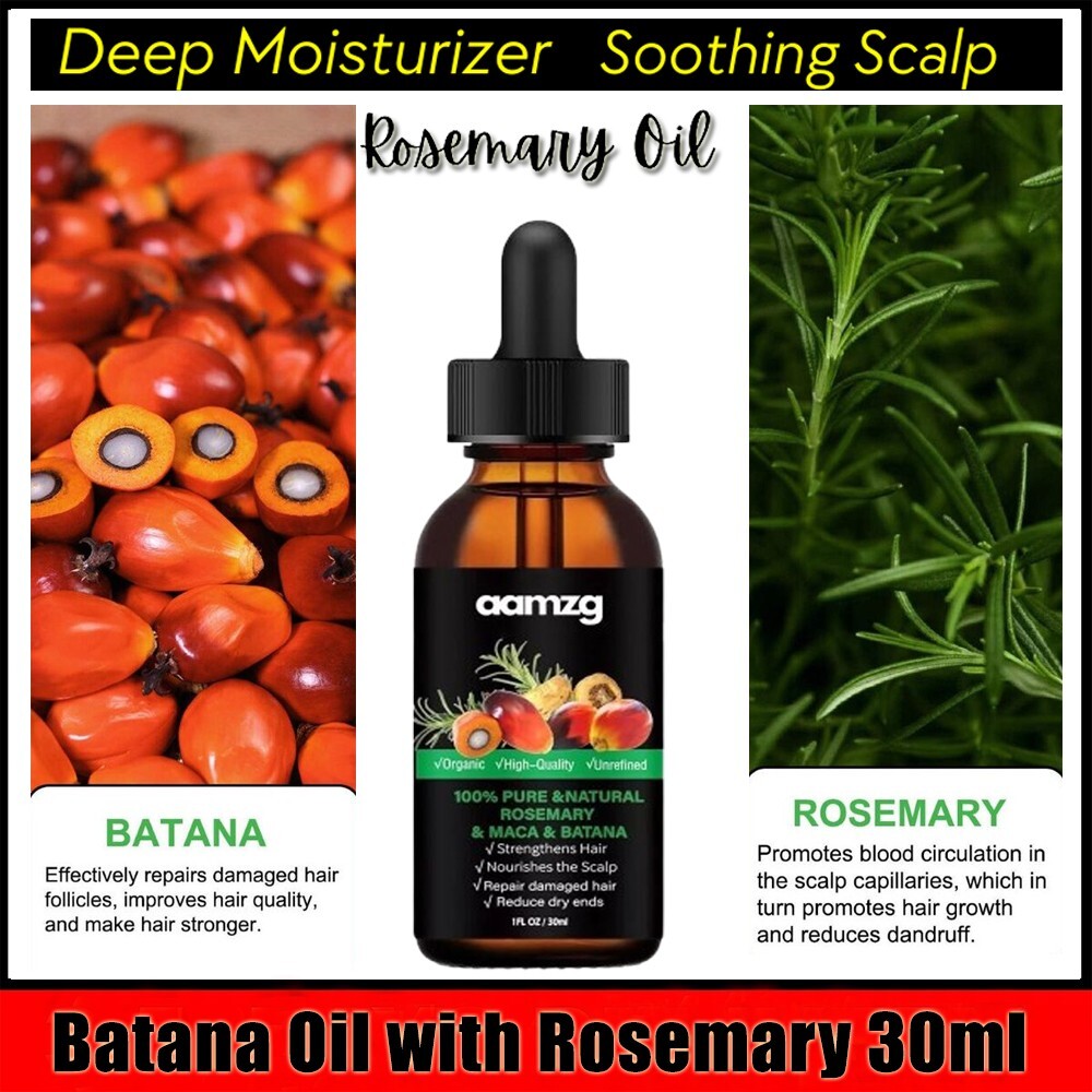Batana Oil with Rosemary for Hair Growth - Nourish Scalp & Detox | 30ML/1 FL OZ. (1 Pack) AAMZG Batana Oil - 100% Pure & Natural from Honduras for Hair Growth, Eliminates Split Ends, Enhances Radiance & Nourishment for All Hair Types, 1.0 fl oz About this item 【Organic Hair Growth Oil】Natural hair growth promoter enriched with Batana, Rosemary, Argan, and Jojoba oils. Enhance hair growth naturally with organic ingredients, promoting thicker and healthier hair growth. 【Enhances Hair Growth & Thickness】Tgideas Batana Oil is designed to promote healthy hair growth and enhance thickness. The oil’s nutrient-rich formula helps strengthen hair follicles, reducing breakage and encouraging fuller, more resilient hair. 【Safe for All Hair Types】This versatile oil works wonders on damaged hair and dry skin. It deeply moisturizes and repairs, improving hair texture and restoring vitality to your skin. Regular use helps to revitalize and rejuvenate for a healthier appearance. 【Multi-Use Nourishing Oil】Ideal for both hair and skin care, Batana Oil can be used as a moisturizing hair treatment, a skin hydrator, or even a nail conditioner. Its rich blend of fatty acids and vitamins provides comprehensive nourishment for all your beauty needs. 【Easy Application & Daily Use】Incorporate Batana Oil seamlessly into your daily routine. For hair, apply to damp hair and scalp, leave for 3-5 minutes, then rinse. For skin, massage gently onto clean, dry areas. Suitable for daily use to maintain healthy, hydrated hair and skin.