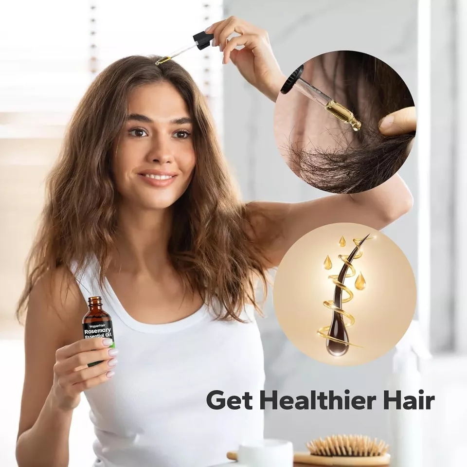 Rosemary Oil (2 Fl.Oz) Organic Essential for Hair Growth, for Thicker Stronger Hair, Nourishes Dry Scalp, Soothes Split Ends of All Hair Types Refreshing and Non-Greasy: Elevate your hair care experience with our rosemary oil, boasting a rich blend of nutrients that invigorate your locks. Bid farewell to greasy textures as this formula actively nourishes your hair, providing essential nutrients for stunning volume and an incredible shine. A must-have for all hair types, it keeps your tresses healthy without unwanted grease. Smooth Split Ends: Experience the lightweight magic of our treatment that indulges your split ends, leaving them nourished and sleek. Prior to shampooing, apply it to the ends of your hair for a soothing and smoothing effect. Achieve a healthy, shiny finish that adapts effortlessly to your styling preferences, be it air-dried or carefully crafted. Soothe Dry Scalp: Immerse your scalp in the goodness of our rosemary essential oil, a luxurious blend of over 30 essential oils and nutrients. Penetrating deep into the scalp, it boosts circulation, combats dandruff, and brings comfort to itchy, sensitive skin. Embrace the transformative effects as it simultaneously strengthens, lengthens, nourishes, and protects your hair. Nourish & Strengthen: Elevate your everyday hair care routine with our nutrient-rich, biotin-infused treatment. Whether used daily or as an intensive deep treatment, it serves as a fortress against damage, ensuring your hair emerges strong and lustrous. Revel in the fresh, invigorating scent that accompanies this revitalizing experience. Promote Hair Growth: Unleash the power of our essential oil in promoting hair growth and maintaining overall hair health. Applied topically after dilution, its tonic properties stimulate hair follicles, resulting in lengthened and strengthened locks. Watch as it gracefully slows graying, minimizes hair loss, and indulges your scalp with a burst of moisture. Note: This Product is designed to deliver optimal results, offering high-quality performance and satisfaction. Please note that individual experiences and outcomes may vary based on personal use, preferences, and unique circumstances. For best results, we recommend following the provided guidelines and ensuring the product is used as intended. Product result may vary for every individual. NOTE Hello Buyer, Thank you for your interest in our product! Please note that I am a reseller, and your order will be shipped directly from our nearest warehouse to your address. If you have any questions or need assistance, feel free to reach out.
