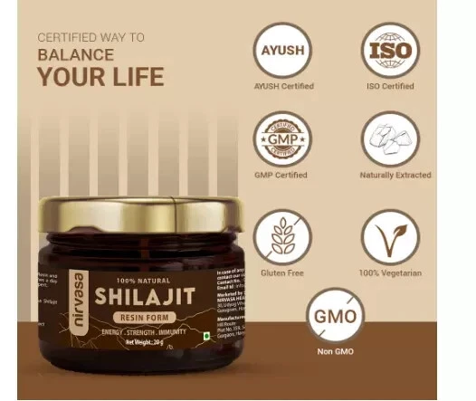 Product Description : Shilajit Resin from the house of Nirvasa is comprised of several health benefits. Since the ancient times, Shilajit has been used in Ayurveda to cure a plethora of diseases and problems. The Shilajit Resin from Nirvasa is a non-toxic, immune strengthening, and energy-boosting infusion of pure Shilajit extracts, clubbed with 70%+ Fulvic acid suitable for both men and women. Regular and correct consumption of this magical gift of mountains is beneficial in boosting energy and promoting the workout performance. Efficacious immunity accelerator Himalayan Shilajit resin for men and women It may slows down aging, boosts energy, relieves stress and improves brain functions More than 70% Fulvic acid and 84+ minerals and trace elements in pure shilajit exudate Contains anti-oxidants to increase strength and preserve healthy glowing skin Why Nirvasa Shilajit Resin is known as Immunity- Energy Seeder & Performance Facilitator? Nirvasa Pure Shilajit Resin with >70% fulvic acid is a non-toxic, may act as an immunity enhancing, and energy-boosting supplement. Being a god’s gift from the ancient times, the consistent and correct consumption of our Shilajit resin for men and women helps upgrade immune system functions and increase energy levels, promoting healthy body performance. Along with over 84+ minerals (like silica, magnesium, sodium, etc.), fulvic acid (a rich source of Oxygen (O2)), this purest and natural Shilajit resin helps in improving healthy digestion and neuro functions. B oosts Immunity Perimeters defensive mechanism of Nirvasa’s Shilajit resin may safeguard cellular immunity and infuses energy enhancing vitals. Nirvasa’s Pure Shilajit resin in India comes with a triple health blend of Himalayan Pure Shilajit exudate, more than 70% of fulvic acid and 84+ trace minerals, which is one of the best remedies to boost immunity naturally. Virus Walling With excellent virus resistivity, this Pure Shilajit helps possess respiratory tract cleansing ability to keep you healthy and fit. It may enhance the brain functionality while protecting cells against virus breach. Derma & Digestive Savvy While being prompt in skin heal-seal and improving skin health, Shilajit resin for men and women from Nirvasa supports digestion and helps you look young. N ot only for Men, But for Women too Nirvasa is known for producing Pure Shilajit which is formulated not only for men, but for women too. Containing more than 84 minerals, our Shilajit resin helps enhance strength and energy. It may support anti-ageing, stimulating metabolism, and reducing stress. P erfect Catalyst for Enhancing Performance Fulvic acid present in Nirvasa’s pure shilajit resin helps increase strength, relieve stress of the body and boost overall performance, in bed as well as in gym. By boosting energy levels, it helps to keep you active throughout the day. Feel the Power with Nirvasa Pure Shilajit Pure Shilajit Resin Exudate for Men & Women It helps protect against cellular damage and safeguard healthy cells, thereby, boosting immunity and energy. Nirvasa’s Shilajit resin improves circulatory function, improves digestion, and prevents premature hair greying. Apart from that, it also promotes bone and skin health. It also helps boost immune health, and treat respiratory congestion. E ffective >70% Fulvic Acid Naturally occurring, fulvic acid is an organic substance known for its ability to elevate the bioavailability of minerals and nutrients in the body. It’s due to its low molecular weight allowing it to pass through the body’s membranes without any hassle and go directly into the cells, taking vital minerals and vitamins with it. In addition to its powerful ability to improve the absorption rate of nutrients and minerals, fulvic acid present in pure shilajit resin is also known for supports protein synthesis, metabolism, neutralizes free radicals due to its high antioxidant levels, and reduces pain and inflammation. 8 4+ Trace Minerals Because pure shilajit exudate is formed right from the right Himalayan Mountain rocks which is present in Nirvasa’s shilajit resin, its mineral content is extremely high. It may contain as much as 84+ minerals and trace elements. The myriad of health benefits of taking trace minerals to increase the body's nutrient absorption is why Shilajit is such a substance of importance in Ayurvedic medicine and sought after supplement around the world. What Makes Nirvasa Pure Shilajit Resin Safe & Effective? Energy Optimizing Resin Pure Shilajit exhibits energy management features. Mineral-rich Shilajit Resin holds energy-boosting attributes that engage its bio-essential to revive and surplus energy. Shilajit might take participate in cell functions in the body, and may reduce tiredness at the source of the problem and upsurge the energy levels naturally. Digestion Facilitator Facilitates nutrition absorption and prevents indigestion. Shilajit resin for men and women from Nirvasa activates digestive enzymes for efficient digestion and maintains your stomach health. Also, it helps in healing digestive issues that include constipation, indigestion, and other stomach conditions that may cause due to cause pain. Maintains Skin Integrity Nirvasa’s pure shilajit resin helps maintain healthy and glowing skin. Fulvic acid helps delay the early signs of aging, exfoliates the skin and helps in sloughing off the outer layer of the skin. Due to the presence of Fulvic acid, Shilajit is responsible for accelerating and regulating signs of ageing. Immune Modulator Natural immunity stimulator, Nirvasa’s Shilajit Resin inherits cell nourishing characteristics that boost the function of the immune system. With improved immunity, you stay safe and healthy. Along with it, it also helps to reduce stress and anxiety and boost the immune system Delivery : Product will be shipped within 3 business days after receiving clear payment. Shipping Service : India Post International Estimated Delivery Time 