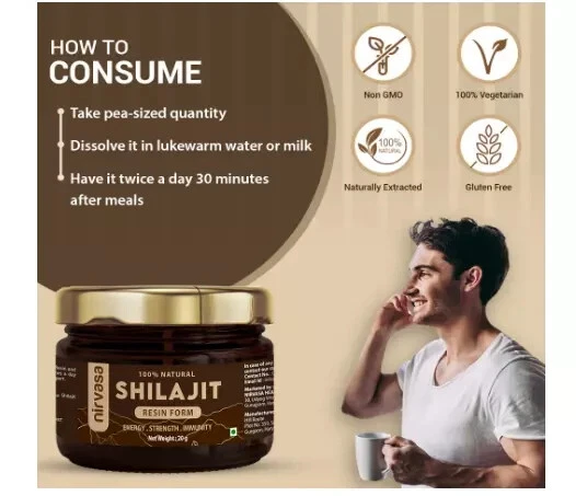 Main Purpose: Anti-Aging, Bodybuilding, Bone Health, Bones & Joints,, Circulatory System, Dietary Supplement, Energy & Endurance,, Immune Support, Men's Health, Mental Health, Metabolism,, Mood Support, Muscle & Nerve Function, Muscle Growth,, Nervous System, Reproductive System Health,, Sexual Health, Sport & Fitness, Testosterone Booster Features: Natural, organic, 3rd - party tested Brand: Nirvasa Department: Men, Unisex Expiration Date: Long Expiry Scent: Herbal, Mineral gtin13: Does Not Apply Body Area: Body When to Take: After Meal UPC: Does Not Apply Dosage: pea sized Country/Region of Manufacture: India Formulation: Resin Type: Resins Ingredients: Shilajit MPN: Does Not Apply Active Ingredients: Fulvic Acid, Shilajit Type of Diet: Ayurvedic, Natural, Organic Administration: Oral