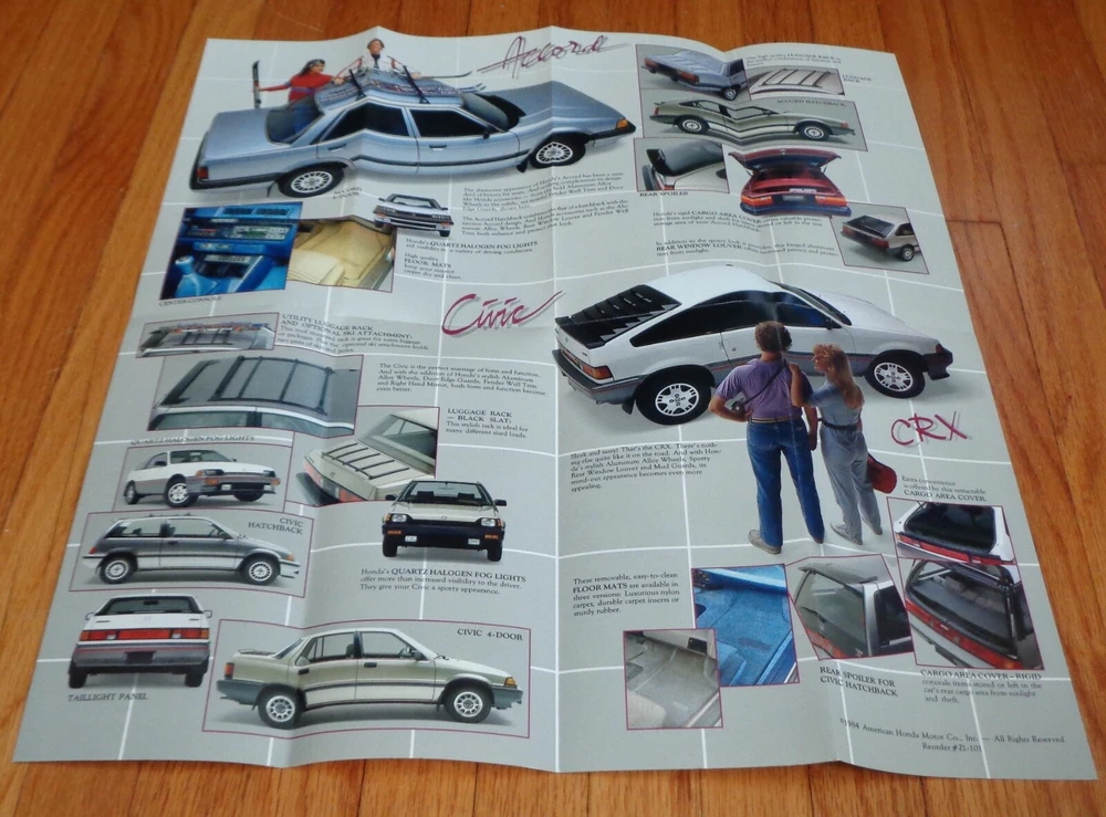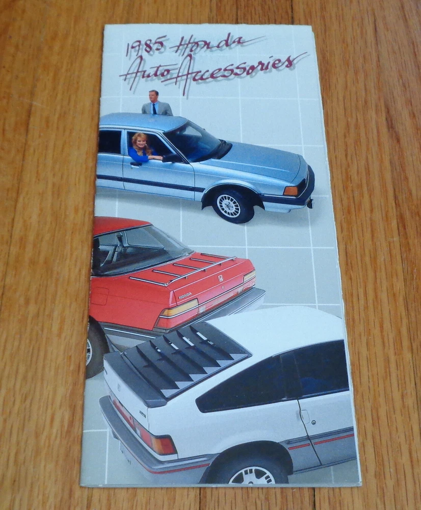 Original 1985 Honda Accessories Sales Brochure ! For Civic, CRX, Accord and Prelude models. Brochure measures 3.75" x 8.50" closed and 15.00" x 17.00" opened with 16 sides. Excellent condition. Winning bidder to add $5 for shipping. Please view my other auctions to save on shipping!