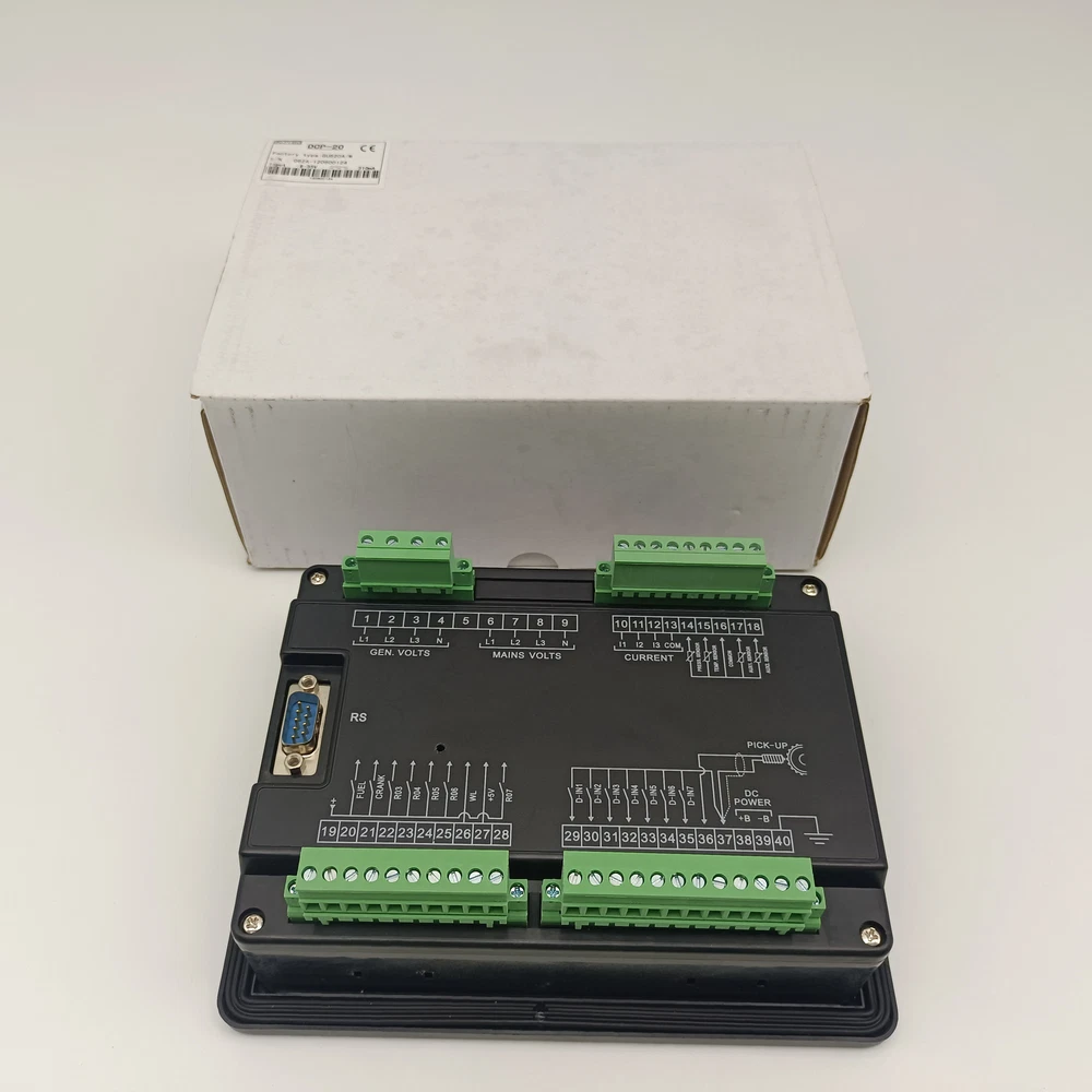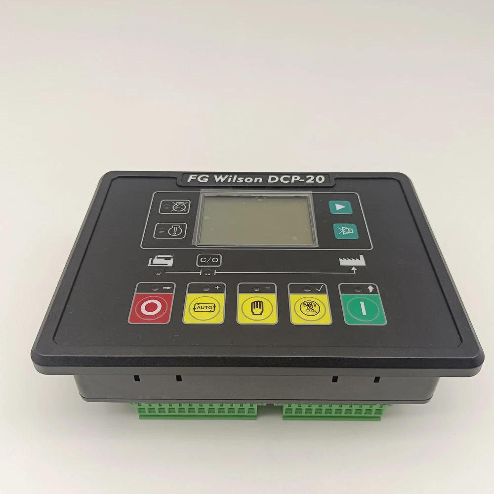 Original DCP-20 FG wilson Diesel Generator Set Controller Control Module DCP-20 is a new generation Automatic control module for single Genset, which adopts brannew outline configuration, focus on the requirements of customers, and perfectly improves the performance of controller. It fully meets the auto control requirements of different kinds of Genset for user or special assembly factory. The module also monitors and protects the engine, indicating operational status, fault conditions and metering on the front panel LCD and LED's.