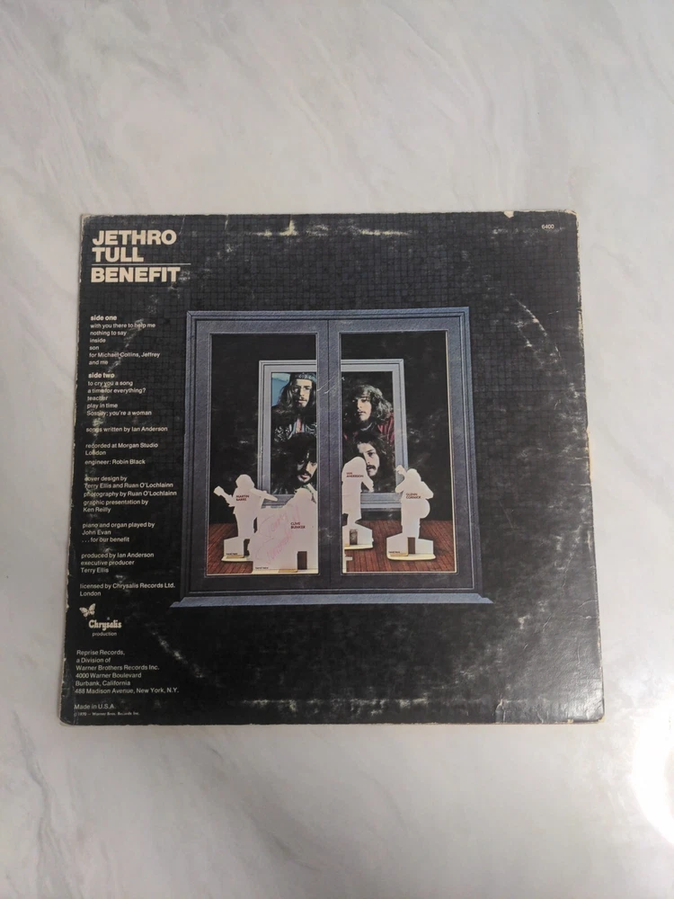 Original 1970 release.l from Chrysalis, perfect for any rock music lover's collection. The vinyl record is in great shape and the sound quality is top-notch, making it a great listening experience. The record label is Chrysalis Records and the artist is Jethro Tull, a legendary rock band. The LP is in the format of a record and the material is vinyl, making it a perfect addition to any music lover's collection. The genre is rock and the title is "Jethro Tull Benefit LP". This is a must-have for any fan of the band or rock music in general.