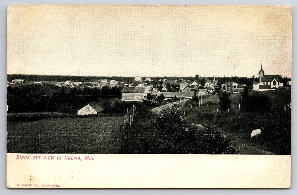 Original Old Vintage Antique Postcard Birds Eye View Of Ogema Wisconsin USA