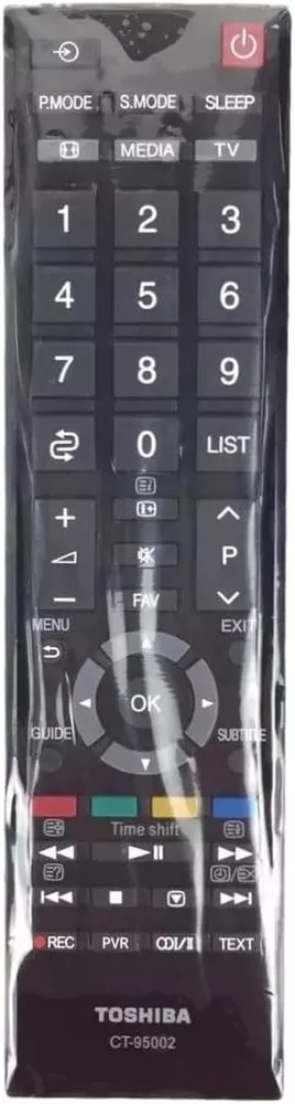 OEM Replacement Remote Control compatible with Toshiba Digital LED TVs 40S3965 43S3965 32L3965 (Remote Model: CT-95002) Toshiba TV Remote Controller Compatibility: 24L3965 24L3965EA 24L3965EE 24L3965EV 24L2900 32L3965 32L3965EA 32L3965EE 32L3965EV 32L2900 40S3965 40S3965EA 40S3965EE 40S3965EV 43L3965 43L3965EA 43L3965EE 43L3965EV 43S3965 43S3965EA 43S3965EE 43S3965EV 49L3965 49L3965EA 49L3965EE 49L3965EV Product Description Compatible Brand: Toshiba Digital LED TVs Upgrade Chip, Durable Lifespan, High Quality, and Stable Performance. Designed for easy replacement and operation. Color: Black Material: ABS Material. Stability and Safety: Better viewing experience, Easy to pair, and made from premium quality materials for long-lasting durability. Package Content: 1 x IR Remote Control (Batteries and Instruction Manual are not included).