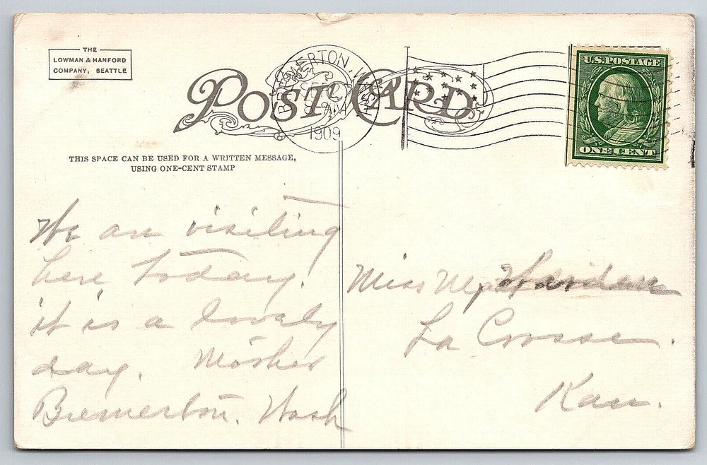 Seller Notes: “Good Vintage Condition.” Brand/Publisher: THE LOWMAN & HANFORD COMPANY, SEATTLE, WASHINGTON Year Manufactured: 1909 Antique: Yes Type: Mail Old Genuine Original Postcard Card Image Picture Antique UPC: DOES NOT APPLY Orientation: Horizontal Subject: Houses Theme: Architecture, Cities & Towns, Community Life, Domestic & Family Life, Famous Places, Historical Figures, Landscapes, Militaria, Roadside America, Seasons, Social History Continent: North America Original/Licensed Reprint: Original Posted: Yes Number of Items in Set: 1 Time Period Manufactured: 1900-1919 Signed: Yes gtin13: DOES NOT APPLY Postage Condition: Posted Unit of Sale: Single Unit Color: Multicolor Occasion: Postcard Country/Region of Manufacture: United States Featured Person: None Country: United States Vintage: Yes Size: Standard (5.5 x 3.5 in) Region: Washington Finish: Matte Features: Divided Back, Stamp, Stamped, Original Genuine Antique Vintage Postcard Stamp: Yes Franchise: Postcard Era: Divided Back (1907-1915) Signed By: Sender Material: Paper Artist: Postcard Character: Postcard