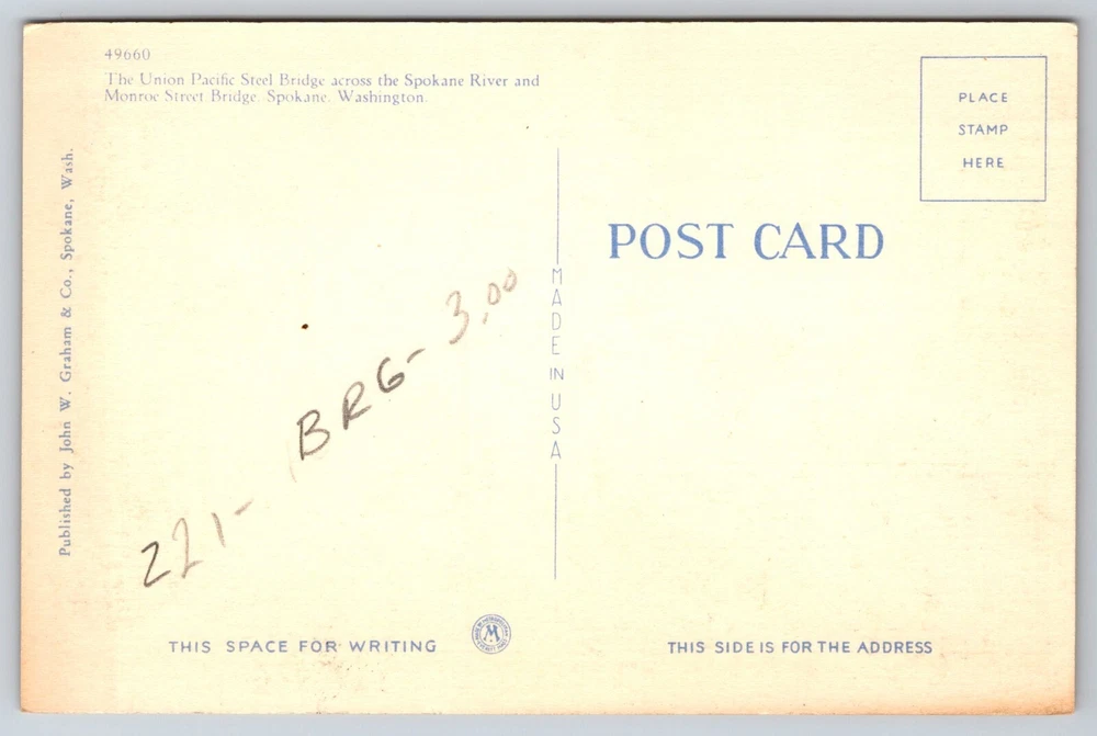 Original Vintage Postcard Union Pacific Steel Bridge River Spokane Washington