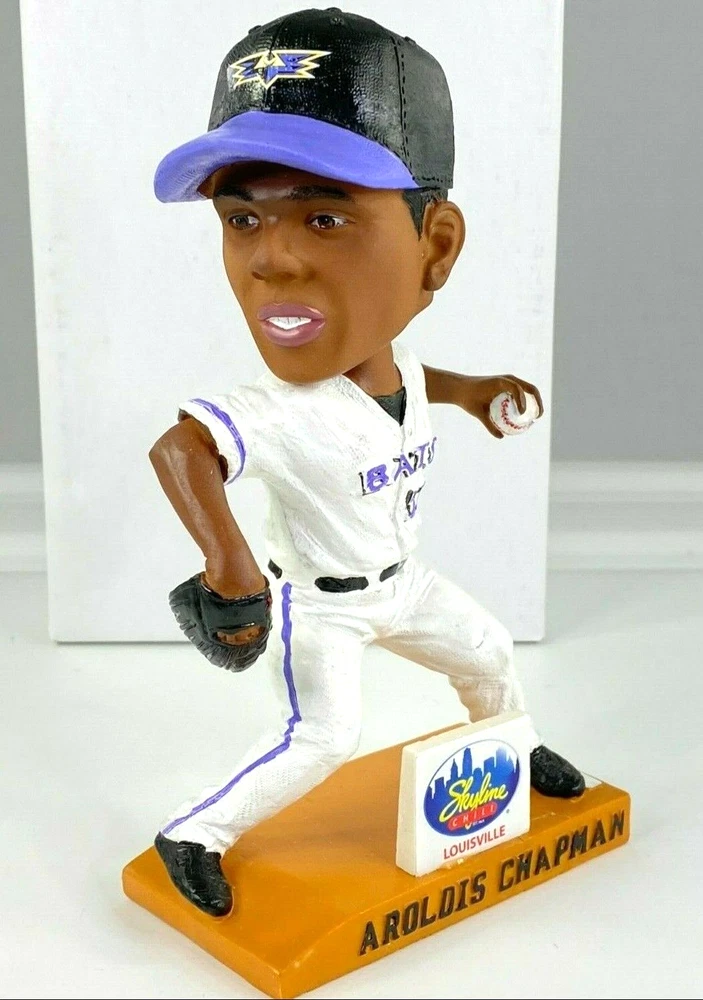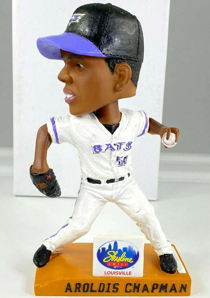 Oroldis Chapman Bobblehead Louisville Bats Reds Baseball 1 Of 2500 7-25-13 New OROLDIS CHAPMAN BOBBLEHEAD NIGHT JULY, 25TH 2013, LOUISVILLE SLUGGER FIELD, CINCINNATI REDS MINOR LEAGUE AAA TEAM, THE LOUISVILLE BATS PROMO LIMITED TO 2500 IN THE WORLD, RARE THIS IS NEW IN BOX, NEVER DISPLAYED. WAS ONLY OPENED TO INSURE GREAT CONDITION VERY COOL DESIGN, NO SIGNS OF ANY ISSUES LONG TIME GREAT PITCHER FOR THE CINCINNATI REDS AND LOUISVILLE BATS THIS BOBBLEHEAD CELEBRATES THE FASTEST PITCH EVER AT 105 MPS OVERALL VERY GOOD BOX WOULD MAKE A GREAT GIFT FOR ANY LOUISVILLE BATS FAN. ADD TO YOUR COLLECTION TODAY! ✨✨✨✨✨✨✨✨✨✨✨ The VinKris Collection is committed to delivering a great experience! We will ship to you with the greatest of care All items are shipped in sturdy boxes We use packing materials appropriate for the product to help ensure safe delivery Shipments to the United States and Protectorates are handled via USPS International shipments will ship via Ebay's International Shipping Program All packages are shipped within 1 business day of payment We ship daily Monday through Saturday Worry free purchases, we stand behind everything we sell with free 30 day returns We have thousands of happy customers and our goal is 100% customer satisfaction We are happy to answer any questions