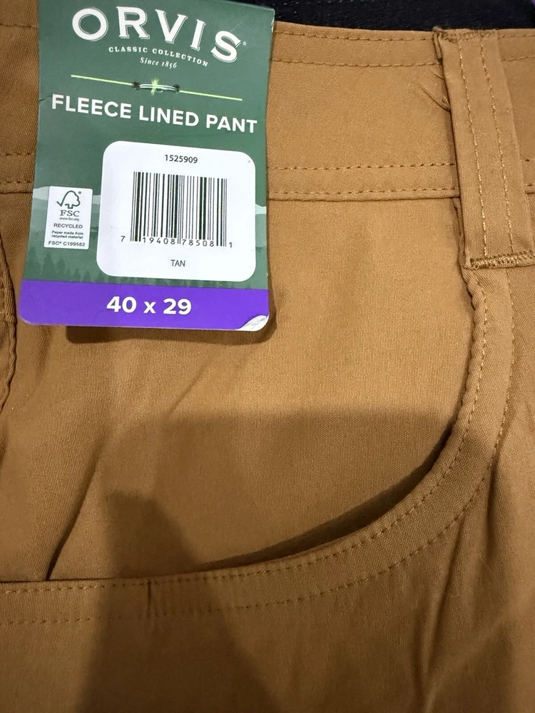 New authentic original Orvis Men’s Fleece Lined Pant Stretch Fabric Water Resistant RG Fit W40L29 Size men’s 40X29 USA 🇺🇸 Sk-110-1317we