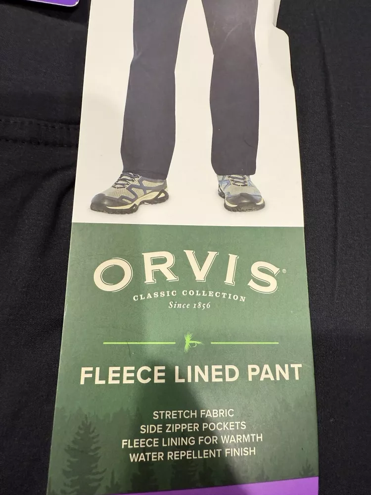 New authentic original Orvis Men’s Fleece Lined Pant Stretch Fabric Water Resistant RG Fit W40L30 Color: black Size Men’s 40x30 USA 🇺🇸 Sk110-1312we