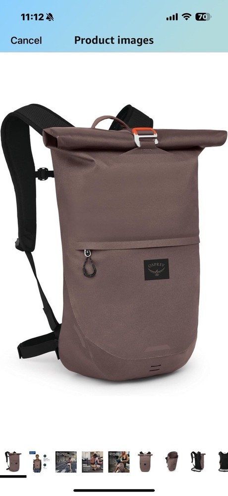 Osprey Metron 25L Waterproof Commuter Bike Backpack, Magma Brown Bike Commute-Specific Features - Glove-friendly buckles, bottle pocket, helmet LidLock, loop for blinky light attachment and reflective details. Waterproof - Roll top closure with dependable waterproof construction and materials bluesign PRODUCT - This product meets bluesign PRODUCT requirements, which means materials and components have been selected that adhere to rigorous environmental and social criteria during production. Waterproof roll top with metal hook closure or flap with secure magnetic closure Magnetically secured, removable padded laptop sleeve with zip stretch mesh compartment, accommodates most 16-inch laptops Description When the rain rolls in, grab the waterproof Metron WP 25 and pedal confidently knowing your stuff is protected by burly, TPU-coated 100% recycled fabrics and welded seams. A secure roll-top closure seals the main compartment and its magnetically-secured, removable padded laptop sleeve. A framesheet-reinforced AirScape™ backpanel stabilizes carry while reflective pops on the sleek exterior bolster visibility.