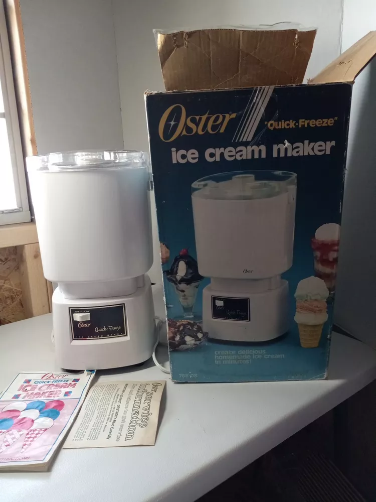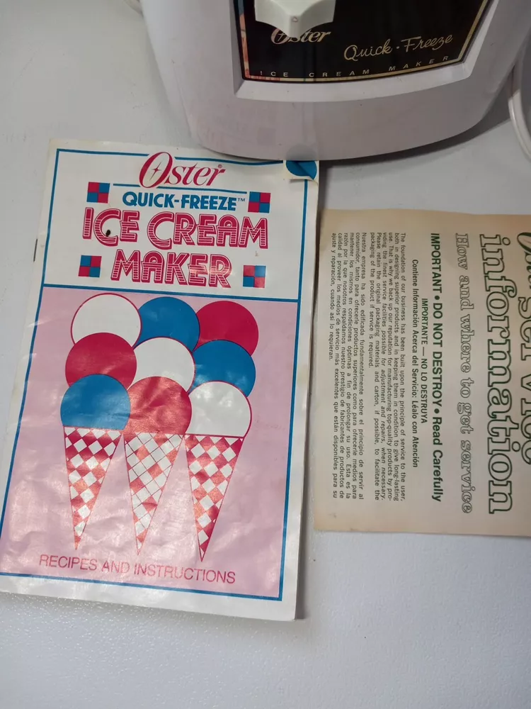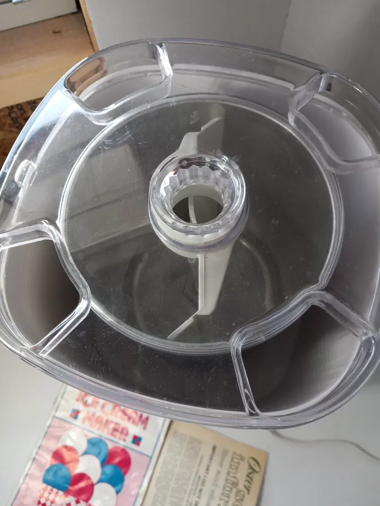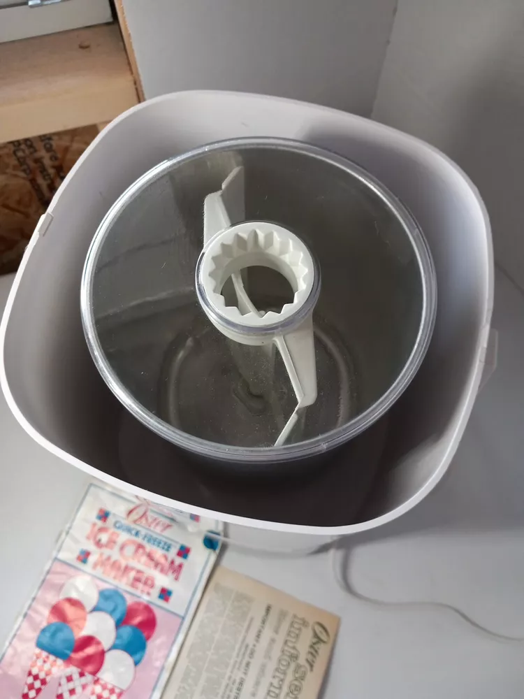 Ice cream mixer is tested and works it is missing the plastic lid if you wanted to put the metal container in the fridge. Look at last picture I will point out the missing lid. Does come with all paperwork Please check out my store Pops Treasure Finds. Please follow me never know what I come across. I buy abandoned storage lockers. Buy Estates and yard sales. Hope you enjoy. Thank you