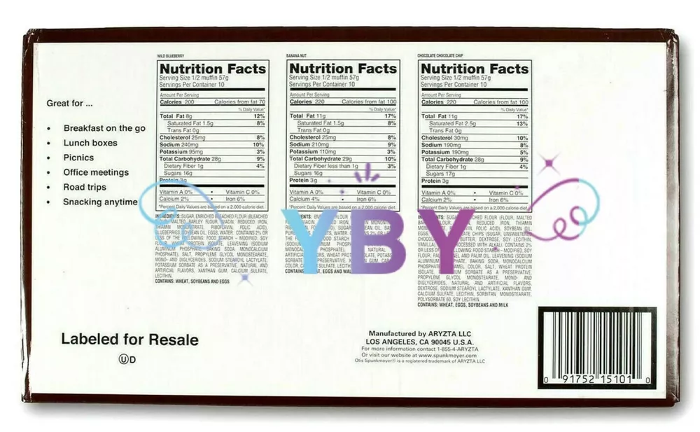 Otis Spunkmeyer Assorted Muffins 15 CT 60 OZ Otis Spunkmeyer three-flavor variety pack Labeled for resale and individually wrapped Otis Spunkmeyer muffins are ideal for concessions, foodservice and c-stores 15 Packs - 4 oz (113g) NET WT 60 OZ (3 LBS 12 OZ) 1.7 KG EACH PACK Feel free to ask any questions regarding to this item