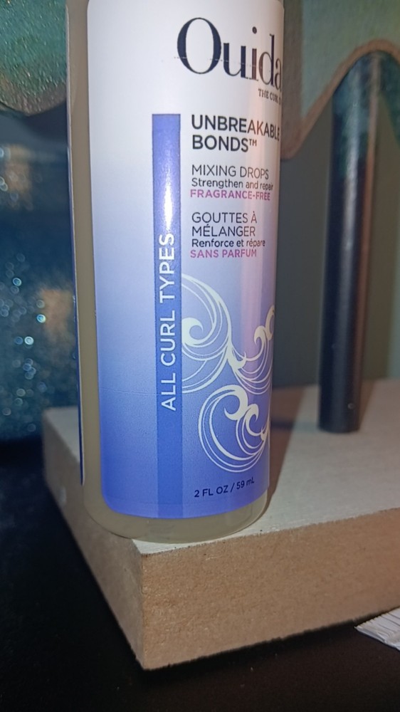 Lot includes NEW FULL SIZE Ouidad Unbreakable Bonds Mixing Drops 2 oz. Mixing Drops in with your styling products to strengthen and repair hair. Made for curls but can be used for all hair types NEW TRAVEL SIZES Advanced climate control anti frizz featherlight styling cream 2 fl oz Hello shine glossy treatment mask 2.2 fl oz