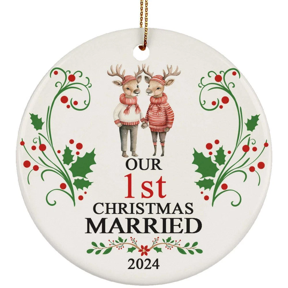 Our 1st Years Christmas Married Ornament Gift 1 Anniversary Funny Deer Couple