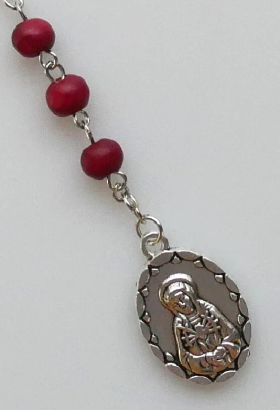 This chaplet recalls the Sorrows of The Virgin Mother of God endured in compassion for the suffering and death of her divine Son. The Seven Sorrows Chaplet consists of seven decades (each decade of 7 beads each) in commemoration of the Virgin, namely, the Annunciation, the Visitation, the Nativity of Jesus, the Adoration of the Magi, the Finding in the Temple, the Resurrection of Jesus and finally, either or both the Assumption. Our Lady said that praying this rosary with a penitent heart would result in forgiveness for our sins from the Lord as well as freedom from guilt and remorse. Furthermore, the longer this rosary is prayed, the more we’ll become aware of our shortcomings; why we sin and what we should do to change those habits. If you’re stuck on a certain problem and need a mother’s guidance, this rosary is also highly recommended for such a time. THIS ROSARY IS NOT INTENDED TO USE AS A NECKLACE ROSARY THIS ROSARY WILL LAST FOR A VERY LONG TIME SIZE/LENGTH: 19" long including the medal. MATERIAL: Zinc alloy silver tone medallions and round black wood beads 1/4" MEDAL: Immaculate Heart Blessed Virgin medal measures 7/8" x 5/8" MEDALLIONS: Zinc alloy silver tone alloy showing the seven sorrows How to pray the Rosary of the Seven Sorrows 1.- The First Sword of Sorrow: The Prophesy of Simeon (Luke 2: 22-35) Pray 1 Our Father and 7 Hail Marys 2.- The Second Sword of Sorrow: The Scape Into Egypt (Matt. 2: 13-15) Pray 1 Our Father and 7 Hail Marys 3.- The Third Sword of Sorrow: The Loss of Jesus in the Temple (Luke 2: 41-52) Pray 1 Our Father and 7 Hail Marys 4.- The Fourth Sword of Sorrow: Mary Meets Jesus on the Way to Calvary (Luke 23: 27-31) Pray 1 Our Father and 7 Hail Marys 5.- The Fifth Sword of Sorrow: Mary Stands at the Foot of the Cross (Jn. 19: 25-27) Pray 1 Our Father and 7 Hail Marys 6.- The Sixth Sword of Sorrow: Mary Receives the Dead Body of Jesus in Her Arms (Jn. 19: 38-40) Pray 1 Our Father and 7 Hail Marys 7.- The Seventh Sword of Sorrow: The Body of Jesus is Placed in the Tomb (Jn. 19: 41-42) Pray 1 Our Father and 7 Hail Marys To prevent from getting damaged it's a good idea to preserve your rosary to put it in case or any container when not being used. Come Visit Us at Our New Store! Please feel free to email me with questions that you may have. Also please check my other listings. I am always available to answer your questions promptly