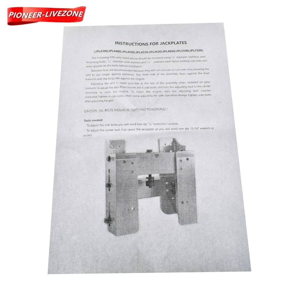 Feature: Premium Quality Construction Crafted from high-strength, polished aircraft-grade aluminum, this jack plate is designed for durability and resistance to rust and corrosion. Its robust build ensures a longer service life, making it ideal for long-term outdoor use. Enhanced Performance With a maximum horsepower of 225, this jack plate is engineered to enhance your boat's performance. It offers 6 inches of adjustable vertical movement, allowing for precise tuning to optimize your boat's handling and speed. Easy Adjustment Adjusting the jack plate is a breeze with just one steel bolt. This user-friendly feature ensures that you can make quick and easy adjustments without the need for specialized tools. Pioneer-Livezoon Outboard 6'' Motor Boat Jack Plate JPL4500 Adjustable Jack Plate Setback Design Feature: Premium Quality Construction Crafted from high-strength, polished aircraft-grade aluminum, this jack plate is designed for durability and resistance to rust and corrosion. Its robust build ensures a longer service life, making it ideal for long-term outdoor use. Enhanced Performance With a maximum horsepower of 225, this jack plate is engineered to enhance your boat's performance. It offers 6 inches of adjustable vertical movement, allowing for precise tuning to optimize your boat's handling and speed. Easy Adjustment Adjusting the jack plate is a breeze with just one steel bolt. This user-friendly feature ensures that you can make quick and easy adjustments without the need for specialized tools. Heavy-Duty Design Built with high-quality replacement parts, this jack plate undergoes rigorous manufacturing, testing, and quality assurance processes. It meets strict quality control standards, ensuring reliable and long-lasting performance. Package:(As Picture) 1 x 6'' Single Adjusting Jack Plate Please Attention: Shipped free from USA Installation instructions are not included Please confirm your make and model before purchasing Dimensions refer to detail drawing, any questions welcome to leave a message Item Specifics Brand labwork-parts Manufacturer Part Number JPL4500 Warranty 90 Day Material Made of high strength polished Quality Aluminum size 6 inches Component Type Outboard Motor Plate Adjustin Single Adjusting Plate Horsepower 225 Maximum Horsepower Payment We accept Paypal,Google Pay,VISA,Master Card,American Express.Discovere,eBay Mastercard payment. Shipping All orders and payments received will be shipped within 3 business day. No shipping on Weekends or US Public Holidays. Return and Refund Policy 1. We stand behind our items and offer warranty. All items are in new and working condition unless specified otherwise elsewhere in the description. 2. All Returns - defective or otherwise - MUST BE PREAUTHORIZED to guarantee refund or exchange. Please contact us to get an authorization and return address. 3. Replacement or Refund will be made upon receipt of the returned item. Please include tracking number so we can process ASAP. If you do not wish to wait for a replacement, please repurchase the item. 4. ALL REFUNDS will be processed via PayPal. Please double check via PayPal history and transaction for confirmation. Feedback We strive to provide the best products and services. Your positive feedback 5 stars DSR help us do better. If anything about your transaction did not meet expectations, please CONTACT US and give us the opportunity to make things right. We are always here to help. Help - Customer Support - Contac Please do not hesitate to CONTACT US. You can message 24/7 on eBay for all questions and inquiries. We will get back to you within 1business days at the latest. Pioneer-Livezoon DESCRIPTION PAYMENT SHIPPING RETURN POLICY CONTACT US Shop Category Store Home Golf Cart Parts & Accessories ◈ Golf cart pump ◈ Golf car brake pad ◈ Golf cart sensor ◈ Golf cart igniter ◈ Golf cart carburetor ◈ Golf cart belt ◈ Golf cart adapter ◈ Golf cart suspension Kit ◈ Steering shaft ◈ Golf cart solenoid valve ◈ Golf car brake ◈ Golf cart led Kit ◈ Golf charger ◈ Golf Wheel Hub Kit ◈ Golf Cover ◈ Others ◈ Golf Seat Boat Parts ◈ kit ◈ Yacht light ◈ boat pump ◈ other Snowmobile parts Tractor Parts ◈ Tensioner ◈ Tractor Carburetor ◈ Cylinder block ◈ Other Go Kart Parts ◈ Clutch Kit ◈ Go kart belt ◈ Carburetor ◈ Brake Cable ◈ Other Truck Parts & Accessories ◈ Others ATV&UTV Parts ◈ ATV&UTV Carburetor ◈ ATV&UTV Ignition ◈ ATV&UTV Engines ◈ Other Excavator ◈ Cylinder Head ◈ Others Electric Bike ◈ Charger ◈ Other Other Hot Item Steering Wheel Assembly Steel Gear Rack Pinion Set For 110cc Go Kart Unused USD 63.75 new For Honda FourTrax 300 TRX300 300FW Ignition Key Switch 1988 1989 1990-2000 USD 7.97 New 339-7370A13 339-832757A4 Ignition Coil for mercury mariner Outboard Boat USD 9.97 Fuel Pump Assy For Polaris Sportsman 450 570 850 #47-1002 2205469 USD 34.25 Recon 250 TRX250 TRX250EX Cylinder Piston Gasket Top End Rebuild Kit For Honda USD 45.68 Excellent Delivery New List Item Rear Propeller Drive Shaft 705501413 703500862 For Can-Am Outlander 1000 12-14 USD 55.00 For EZGO Electric Golf Cart 1994-2022 Rear Axle Assembly w/ Brake Drum 73500G01 USD 432.61 J41-82550-02 For Yamaha Gas & Electric 1985 to 1994 G2-G9 Stop Switch Assembly USD 22.00 1027717-01 For Club Car 1998-up DS 2004-up Precedent tram Rear Axle Assembly USD 450.96 New Trim Motor 75 90 F75 F90 For Yamaha Outboard 2005-08 6D8-43880-01-00 PT627NM USD 66.16 Outboard 6'' Motor Boat Jack Plate JPL4500 Adjustable Jack Plate Setback Design Feature: Premium Quality Construction Crafted from high-strength, polished aircraft-grade aluminum, this jack plate is designed for durability and resistance to rust and corrosion. Its robust build ensures a longer service life, making it ideal for long-term outdoor use. Enhanced Performance With a maximum horsepower of 225, this jack plate is engineered to enhance your boat's performance. It offers 6 inches of adjustable 