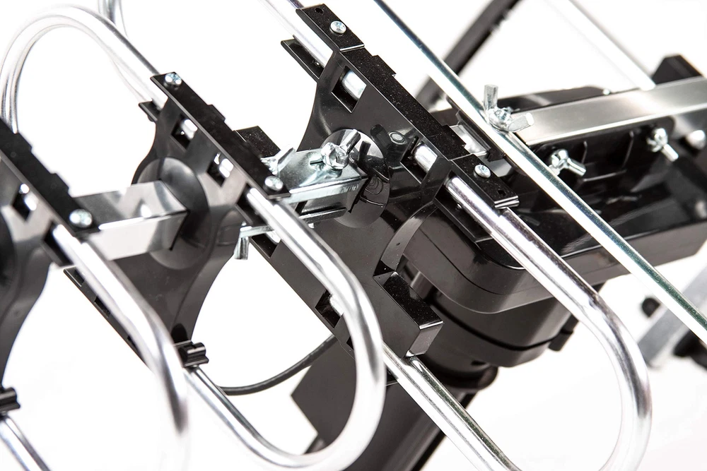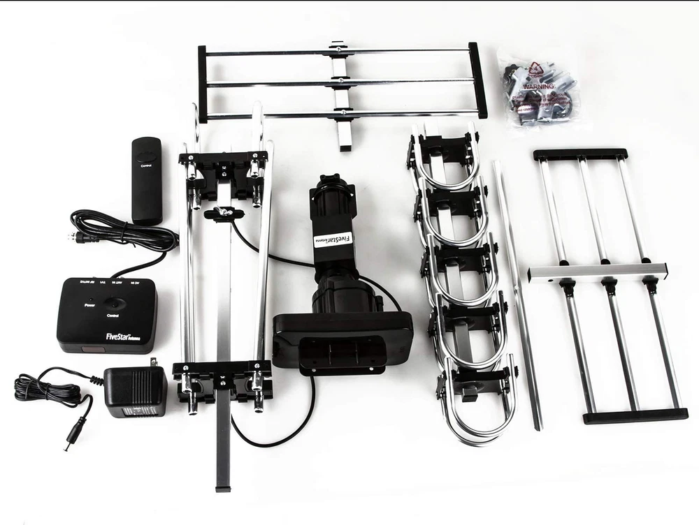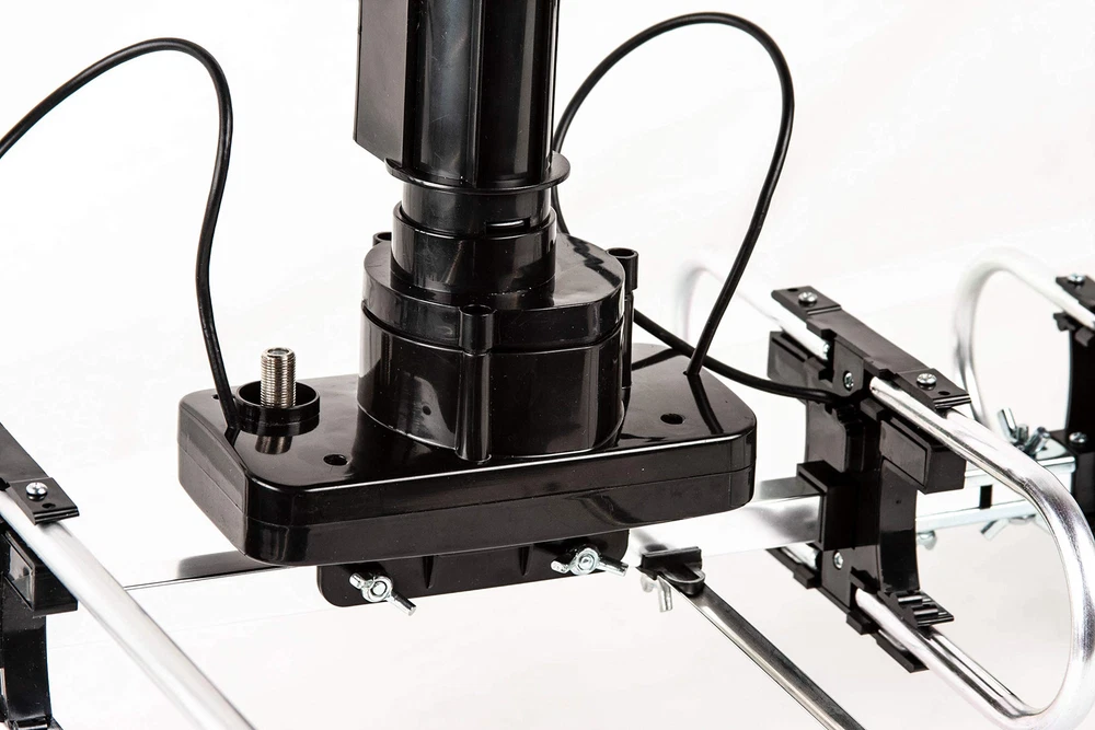 [Product Content] Package only included Antenna, Control Box, Remote Control, Power supply, 40ft RG6 Coaxial Cable, and Instruction (Mounting Pole is not included) "Auto Gain Control": Gain 15-35db, New technology for adjusting high quality signal reception performance. Built-in Super Low Noise Amplifier: Operating Frequency 45-860MHz. Built-in LTE filter which removes the interference caused by 4G phone signals and ensure the noise-free digital TV reception. Full band DTV/VHF/UHF Receiver: Supports 4K HD TV, 1080p,1080l, 720p Broadcast, Radio. 360 Degree Rotation. US, Canada, Mexico, Latin America and around the world Free up to 200 Local HDTV Channels for $0/Month Benefits: Two extra UHF elements and Up to 50% larger VHF elements to enhance the UHF/VHF channel reception and better image quality. Up to 25% more reflected area to enhance the receptions for all Channels. High quality copper cable to enhance the signal transmission from antenna to the receiver. Special wind proof design to enhance the durability of the Antenna. By using much higher quality material to make this antenna to last longer in all weather conditions.