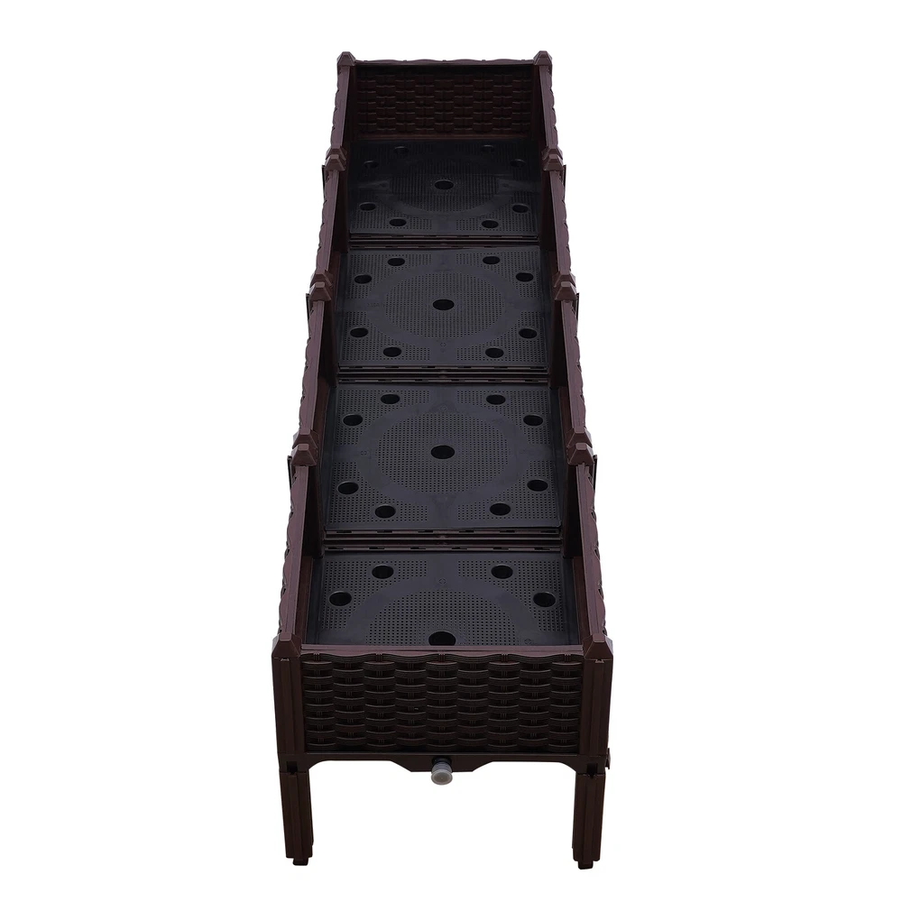 Outdoor Elevated Raised Garden Bed Planter Box with Legs for Vegetable/Flower Description The 4 raised garden beds with large capacity can provide sufficient growth space to grow vegetables, plants, etc. They are made of food-grade PP, which can be used outdoors or indoors for a long time. The raised garden beds with drain holes and drain pipes that can drain excess water. They are suitable for gardens, small patios, decks, balconies, and apartments. It can be used to plant plants, vegetables, flowers, herbs, etc. Key Features Large Capacity: The 4 raised garden beds with large capacity can provide sufficient growth space to grow vegetables, plants, etc. High Durability: The raised garden beds are made of food-grade PP, which can be used outdoors or indoors for a long time. Comfortable Gardening: The raised garden beds will bring you a comfortable gardening experience, alleviating the need to bend while protecting your plants from disturbing by wild animals. Drain Holes and Pipes: The raised garden beds with drain holes and drain pipes drain excess water and help plants fully absorb water and nutrients. Easy to Assemble: You can easily install them by putting the frames and sheets together without much effort and time. Wide Application: The raised garden beds can be placed on many occasions such as in gardens, small patios, decks, balconies, and apartments. It can be used to plant plants, vegetables, flowers, herbs, etc. Light Weight: The raised garden beds are light enough to be placed anywhere you want, facilitating your daily gardening. Guaranteed After-sales Service : We aim to provide quality products and services, if you have any problems, please feel free to contact us, we will reply and solve the problem for you as soon as possible. Details Plastic Material: The raised garden beds are made of food-grade PP with good toughness, so they are more durable and can be used for a long time both indoors and outdoors. Drain Holes: The raised garden beds have drain holes that can effectively drain excess water. Application The raised garden beds are suitable for gardens, small patios, decks, balconies, and apartments. It can be used to plant plants, vegetables, flowers, herbs, etc. Specification Material: PP Color: Brown Quantity: 4 Each Product Size: 39*39*38cm/15.35*15.35*14.96in Four Combined Sizes: 156*39*38cm/61.41*15.35*14.96in Package Included 4* Raised Garden Beds Notes 1 . Please put enough soil in the garden box first, otherwise it will not stand stable. 2. Please allow the slight color difference caused by the shooting light and 1-3cm error due to manual measurement, and make sure you do not mind before ordering. Payment Delivery details Terms of sales About us Contact us Payment We accept ebay payment 。 Fees such as import duties, taxes are not included in the item price or shipping costs. These charges are the buyer's responsibility. Delivery details Shipping: 2-9 working days to: USA Terms of sales We maintain high standards of excellence and strive for hundred percent customer satisfaction. Feedback is very important to us. We hope that you contact us immediately before you give neutral or negative feedback, so that we can address your concerns. It is impossible to address issues if we do not know about them! About us Your satis faction is our ultimate goal. We work hard to earn your trust and future business. Our certified technicians have tested each item before shipping. The unit comes with 1 year limited warranty on all manufacturing defects. a) If you receive a defective item, you may return it or ask for a discount. Please contact us within 14 days after you receive the package. b) What you returned must be intact and in its original packaging as re? u. Customer is responsible for shipping costs of the returned item. c) We will cover the cost of shipping back t with the shipping rate indicated in the registration page. We will send you a new unit or refund the full payment you paid. Thank you. Contact us Business Hour Business Hour: Monday To Friday: 8:30 AM to 5:00 PM (Beijing China time) Due to time zones, our reply to your questions may not be immediately. But within above working time, we will reply your email within 24 hours. If it's non-workdays, please kindly be patient and wait till Monday. Please contact us with ebay message. Please feel free to contact us if you have any questions. Monday To Friday: 8:30 AM to 5:00 PM (Beijing China time) Due to time zones, our reply to your questions may not be immediately. But within above working time, we will reply your email within 24 hours. If it's non-workdays, please kindly be patient and wait till Monday. Please contact us with ebay message. Please feel free to contact us if you have any questions.