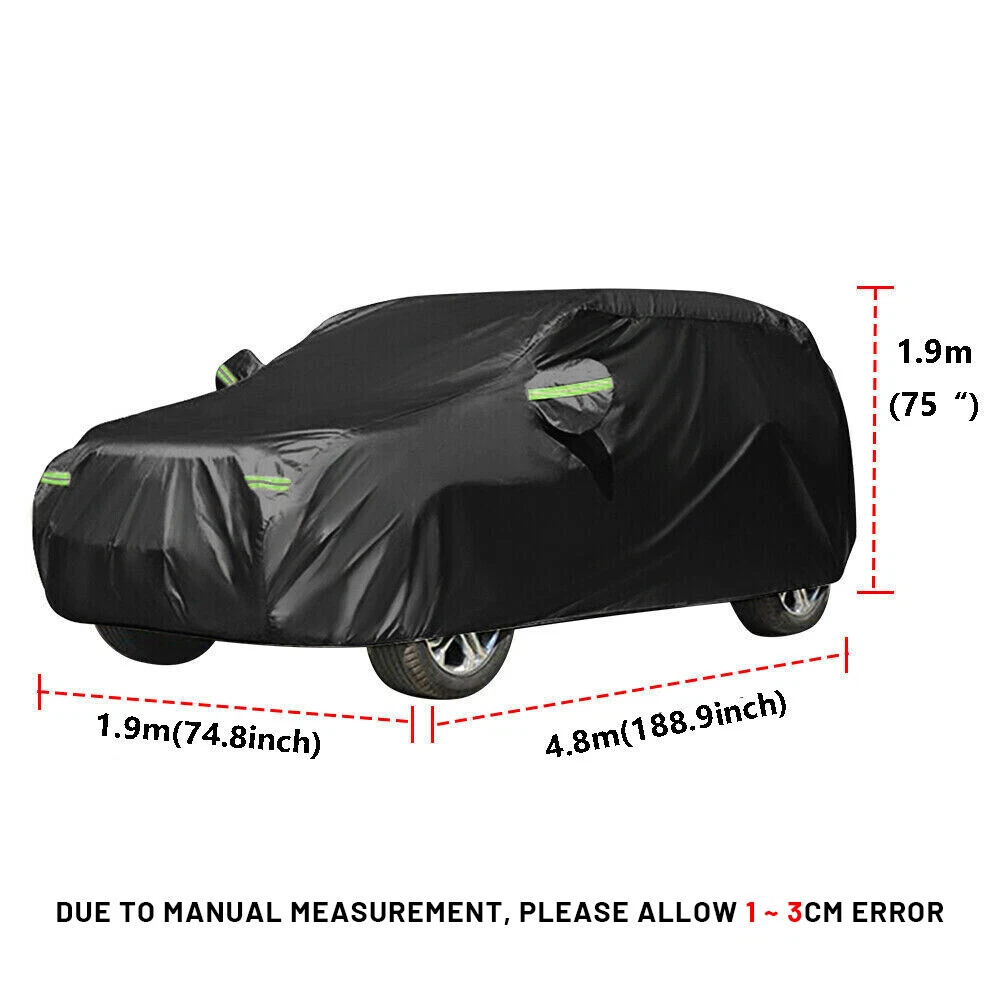 Details Feature: 【Weatherproof Full Protector Car Cover】 Crafted from high density polyester taffeta with silver coating, the sturdy material is heat insulation, sunproof, windproof, waterproof, hailproof, snowproof, dustproof scratch resistant. 【Reflective Strips】The 6 fluorescent reflective strips will shine at night to remind others away from the car and help you find the car quickly.With ear design for covering car mirrors. 【Windproof & Anti-scratch】Double thread sewing,not easy to tear off;Elastic band,Windproof is stronger. 【Universal Car Cover】This Car Cover size is 190" L X 75" W X 73" H,. please actually measure your car size before purchasing. 【Easy Installation】Easy to put on and off, adjustable straps with durable buckle at the bottom to protect your car cover in heavy wind from blowing off. Specifications: Type: Full Car Cover Size: 190*75*73" Color: black Material: 190T Polyester Taffeta Note: In Different Years, The Length Of The Car Is Different. Please Choose The Cover According To Your Car Length. Package include: 1 x Full Car Cover W/ Reflective Strip 1x Storage Bag Shipping Policy Payment Method Returns Policy Shipping Policy 1. Item will be shipped 24-48 hours after full payment is received. 2. eBay’s estimated delivery date can only be considered as an average delivery date (some orders may be quicker, some may be slower). 3. The shipping time is about 3 to 10 business days exclude Sat and Sun. Payment Method This is the description of Payment Method. Do not dismiss your dream. To be without dream is to be without hope. To be without hope is to be without purpose. Do not run through your life so fast that you forget not only where you have been, but also where you are going. Life is not race, but a journey to be savored each step of the way. Returns Policy This is the description of Returns Policy. Do not dismiss your dream. To be without dream is to be without hope. To be without hope is to be without purpose. Do not run through your life so fast that you forget not only where you have been, but also where you are going. Life is not race, but a journey to be savored each step of the way. Home Payment Shopping About Us Contact Us Copyright©2018 datacaciques Home Payment Return Policy About us Contact us Details Feature: 【Weatherproof Full Protector Car Cover】 Crafted from high density polyester taffeta with silver coating, the sturdy material is heat insulation, sunproof, windproof, waterproof, hailproof, snowproof, dustproof scratch resistant. 【Reflective Strips】The 6 fluorescent reflective strips will shine at night to remind others away from the car and help you find the car quickly.With ear design for covering car mirrors. 【Windproof & Anti-scratch】Double thread sewing,not easy to tear off;Elastic band,Windproof is stronger. 【Universal Car Cover】This Car Cover size is 190" L X 75" W X 73" H,. please actually measure your car size before purchasing. 【Easy Installation】Easy to put on and off, adjustable straps with durable buckle at the bottom to protect your car cover in heavy wind from blowing off. Specifications: Type: Full Car Cover Size: 190*75*73" Color: black Material: 190T Polyester Taffeta Note: In Different Years, The Length Of The Car Is Different. Please Choose The Cover According To Your Car Length. Package include: 1 x Full Car Cover W/ Reflective Strip 1x Storage Bag Shipping Policy Payment Method Returns Policy Shipping Policy 1. Item will be shipped 24-48 hours after full payment is received. 2. eBay’s estimated delivery date can only be considered as an average delivery date (some orders may be quicker, some may be slower). 3. The shipping time is about 3 to 10 business days exclude Sat and Sun. Payment Method This is the description of Payment Method. Do not dismiss your dream. To be without dream is to be without hope. To be without hope is to be without purpose. Do not run through your life so fast that you forget not only where you have been, but also where you are going. Life is not race, but a journey to be savored each step of the way. Returns Policy This is the description of Returns Policy. Do not dismiss your dream. To be without dream is to be without hope. To be without hope is to be without purpose. Do not run through your life so fast that you forget not only where you have been, but also where you are going. Life is not race, but a journey to be savored each step of the way. Store Categories Store Categories Other Home Payment Shopping About Us Contact Us Copyright©2018 datacaciques