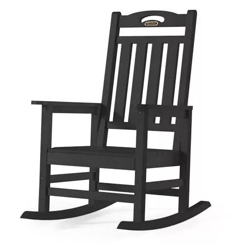 Return Policy Fast Delivery Trusted seller Outdoor Rocking Chair, High Back Porch Rocker Chair, All Weather Resistant HDPE Oversized Rocking Chairs for Patio, Garden, Lawn, Indoor (Black) Product Description Relaxing State: rocking chair features an ergonomic curved design that sets it apart from traditional, straight-backed rocking chairs. With a more reclined angle, it offers enhanced comfort and support, ensuring you enjoy a truly relaxing seating experience. Anti-Rollover Design: The porch rocker is equipped with 4 sturdy support points and cross bars, which evenly distribute weight for enhanced stability. The carefully calibrated rocking angle ensures your safety while maximizing comfort. Premium Material: Our outdoor patio chairs are crafted from HDPE, a strong and durable material that is both recyclable and environmentally friendly. Unlike wooden chairs, our HDPE rockers are waterproof and weather-resistant. They won’t chip, peel, or rot, making them the ideal choice for outdoor use. Oversized Rocking Chair: With dimensions of 35"L x 25"W x 41"H, the high back offers excellent head support for various body shapes. Enjoy a comfortable rocking experience while reading or napping, whether indoors or outdoors. Customer Service: is a brand devoted to product excellence and rapid growth. If you have any product inquiries, don’t hesitate to reach out to us. Your satisfaction is our top priority. Shipping Returns Payment Shipping Shipping is FREE to all addresses other than APO/PO boxes in the lower 48 states. All our stock ships from US-based warehouses. Shipped via USPS or UPS (depending on location and package weight) Unless stated otherwise, all orders will ship within 24-72 hours of your payment being processed. Check our feedback to see the great reviews of FAST shipping we offer. Returns Seller does not accept returns Payment We currently accept payment via eBay managed payments only. Once payment is cleared, we will dispatch your shipment within 1-3 business days. Please refer to the "Shipping" tab for more information regarding shipping speed to your destination.