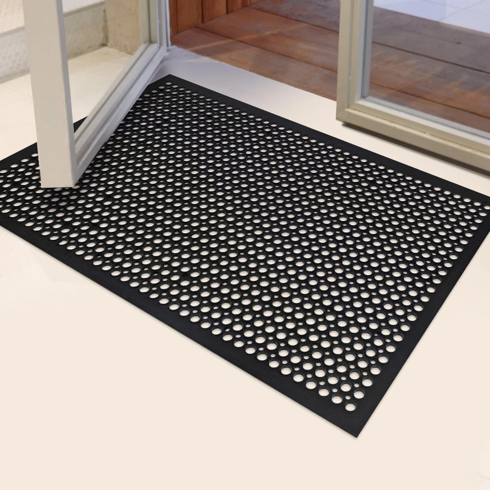 Anti fatigue Rubber Scraper Mat,The holes and perforated design of this all purpose entrance doormat traps dirt, preventing it from spreading. Simply hose the mat with water to clean up any dirt or grease Rubber Floor Mat,We use the good quality material ,Made of high-grade, eco-friendly rubber, sustainable and durable No Slip Floor Mats, Reduce the amount of slippery liquids and oils left on the floor.Grease and water-resistant rubber help keep the entrance mat in place, especially when used in high-traffic areas Indoor Outdoor Rubber Mat,Ideal for uses in bar, kitchen, restaurant, outdoor, boat, as well as warehouse or other industrial areas where moisture and heavy foot traffic are a problem Anti fatigue floor mat, Help to prevent dangerous accidents, size: 60" x 36" x 0.4", Spend most economical money buy this best floor mat, you will never regret for your choice when you got our mat. Providing premium quality products for your home and office without the heavy price tag charged by many of our competitors.